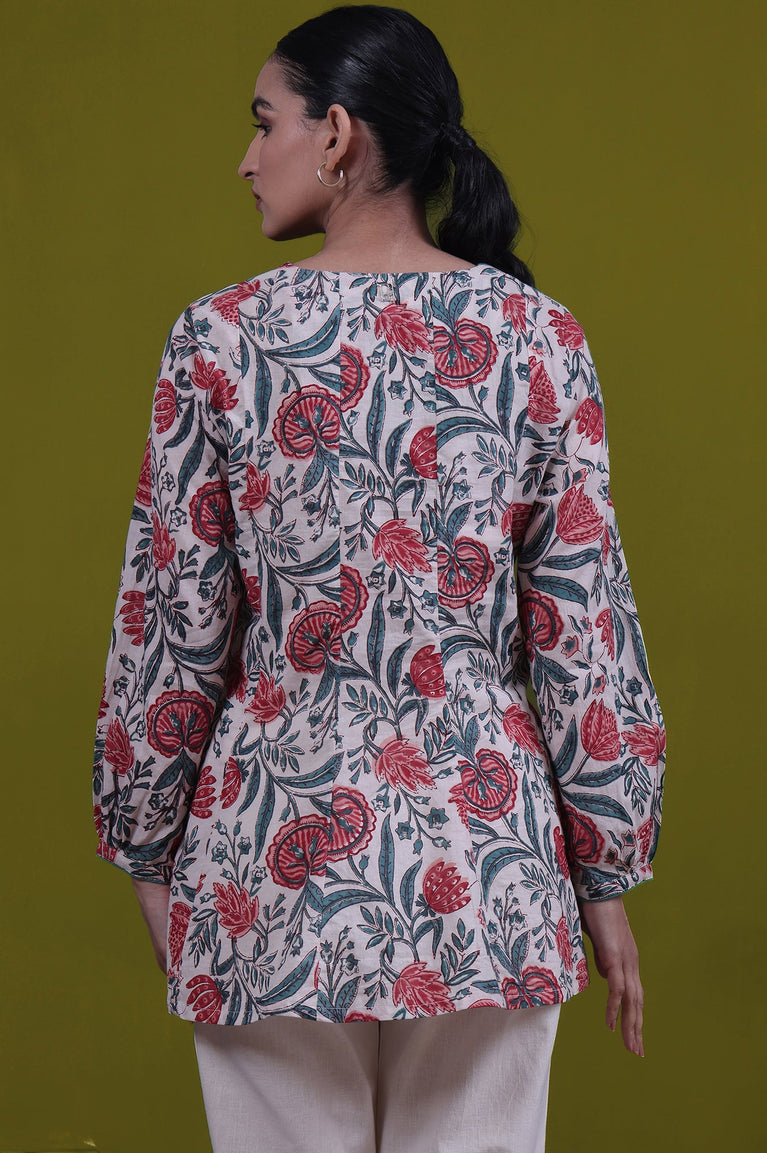 Some garments just feel like a masterpiece, and this is one of them. This gorgeous A-line kurta for women is a celebration of floral artistry, designed to bring a touch of nature's beauty to your wardrobe. A dense, tapestry-like print unfolds across the fabric, showcasing rich crimson, deep maroon, and delicate rose blooms on a sophisticated beige canvas. The A-line silhouette is universally flattering, offering a comfortable fit that flows effortlessly to a straight hemline, with side slits for easy movement. Its V-neckline is perfectly cut to frame your collarbones, adding a subtle hint of elegance, while full-length sleeves provide a graceful and polished finish. The yoke area is seamless, allowing the intricate pattern to shine without interruption. Crafted from a beautifully draping, opaque fabric, this printed tunic feels as good as it looks. There are no heavy embellishments or lace details, ensuring the focus remains on the exquisite print and clean tailoring. It’s a versatile single-piece kurta that you'll love styling for everything from brunch with friends to casual workdays or festive family get-togethers, making it a true standout piece of apparel.