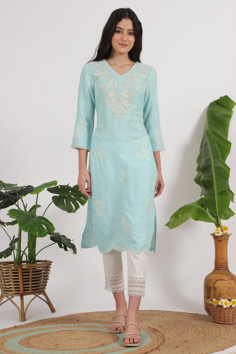 Step into festive elegance with this embroidered straight kurta. Crafted from soft and flowy rayon fabric, it offers a comfortable yet polished fit. The sleek straight silhouette is beautifully accented with intricate embroidery, adding a touch of sophistication and festive charm. Perfect for celebrations or special gatherings, this kurta effortlessly combines style and comfort, making it a standout piece in your wardrobe.
