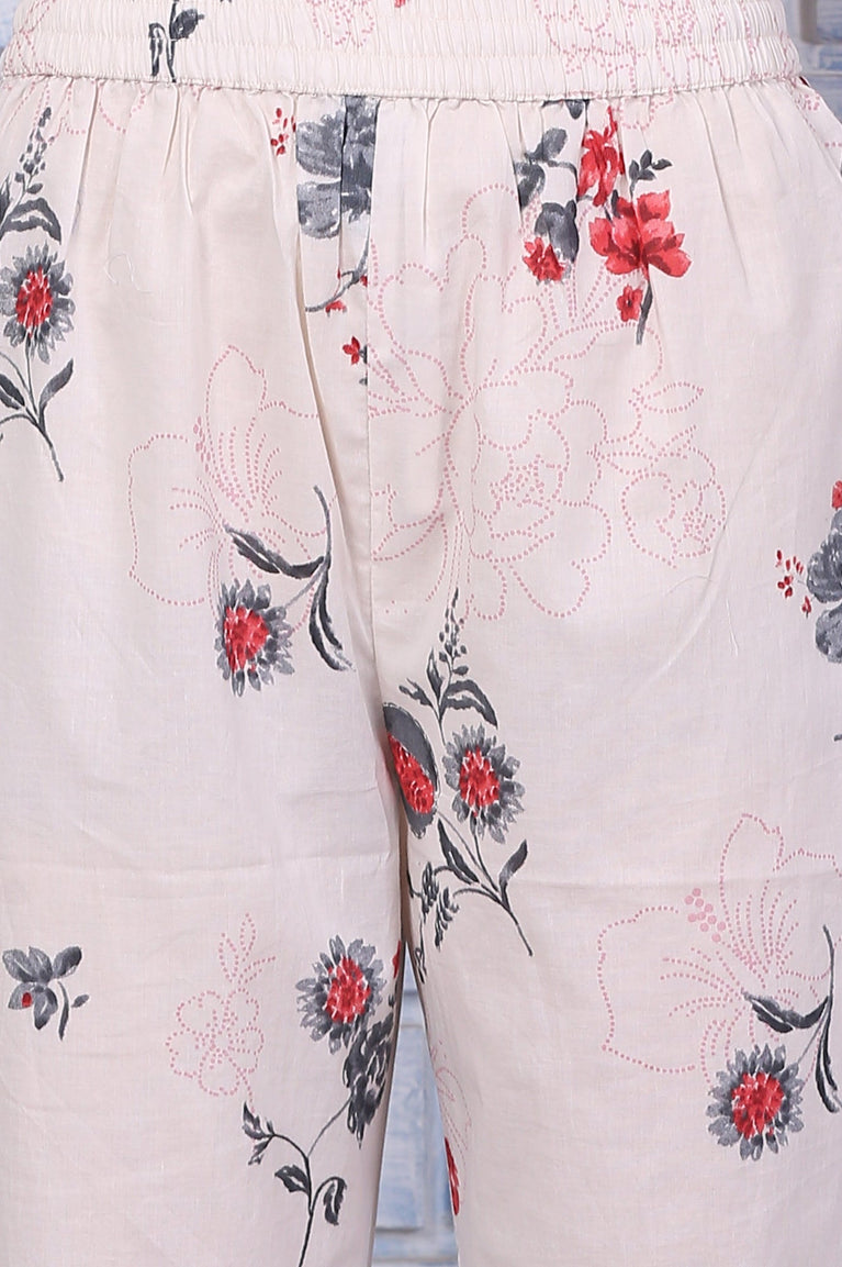 Off-White Floral Printed Pure Cotton A-line Kurta and Pants Co-ord Set