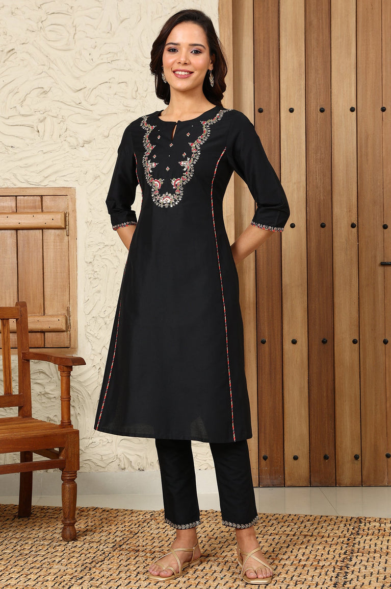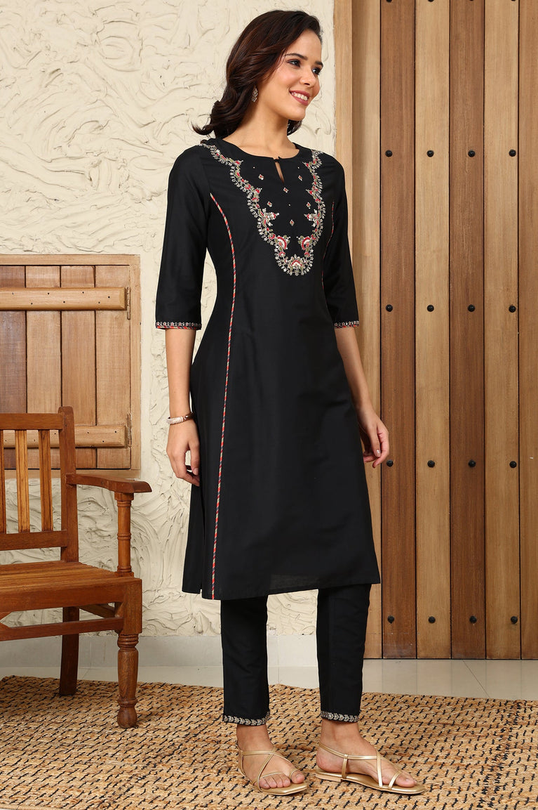 Black Solid Dori Embroidered Festive Straight Kurta
