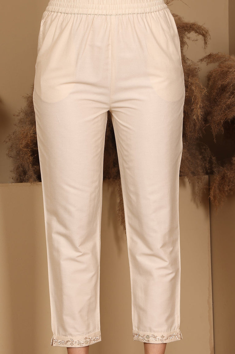 Beige Jacquard Sleeveless Embellished Kurta, Pants And Dupatta Set