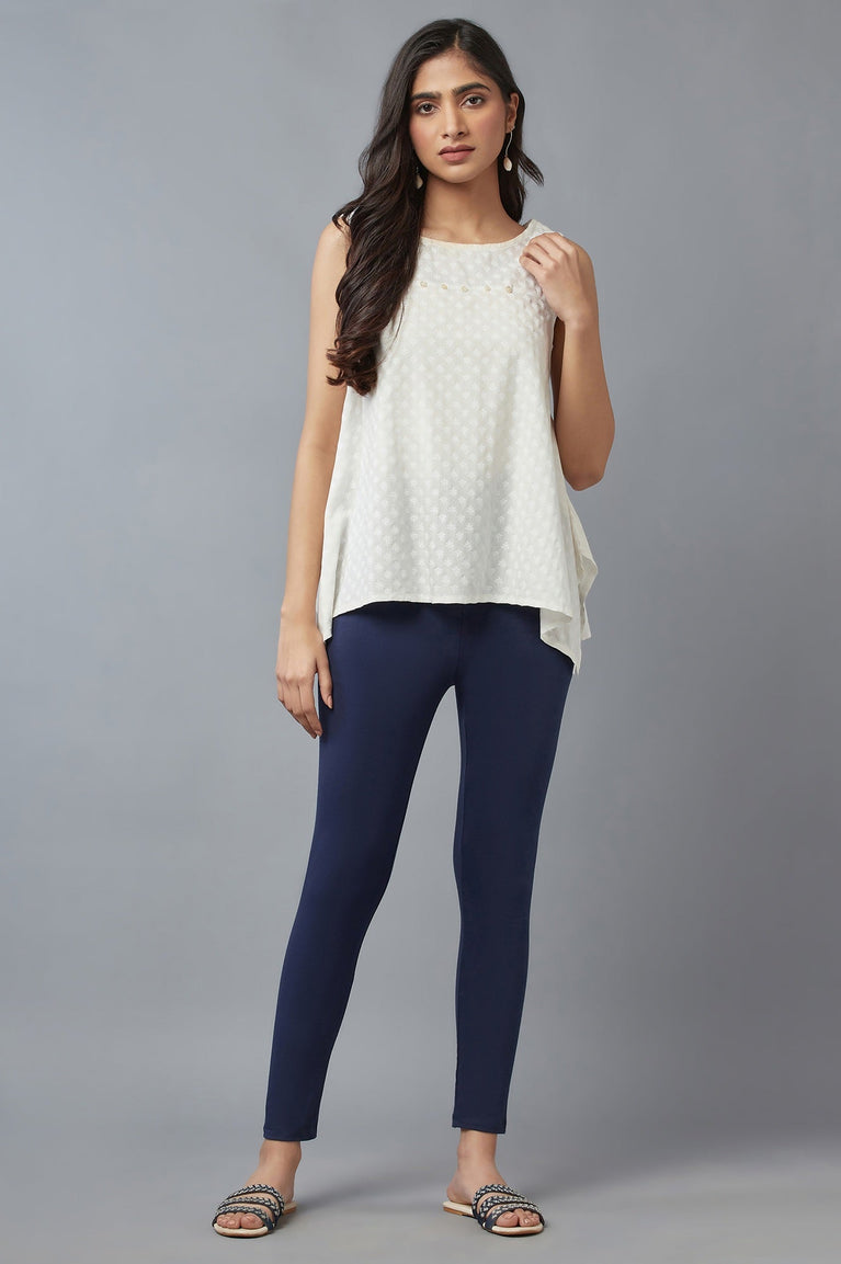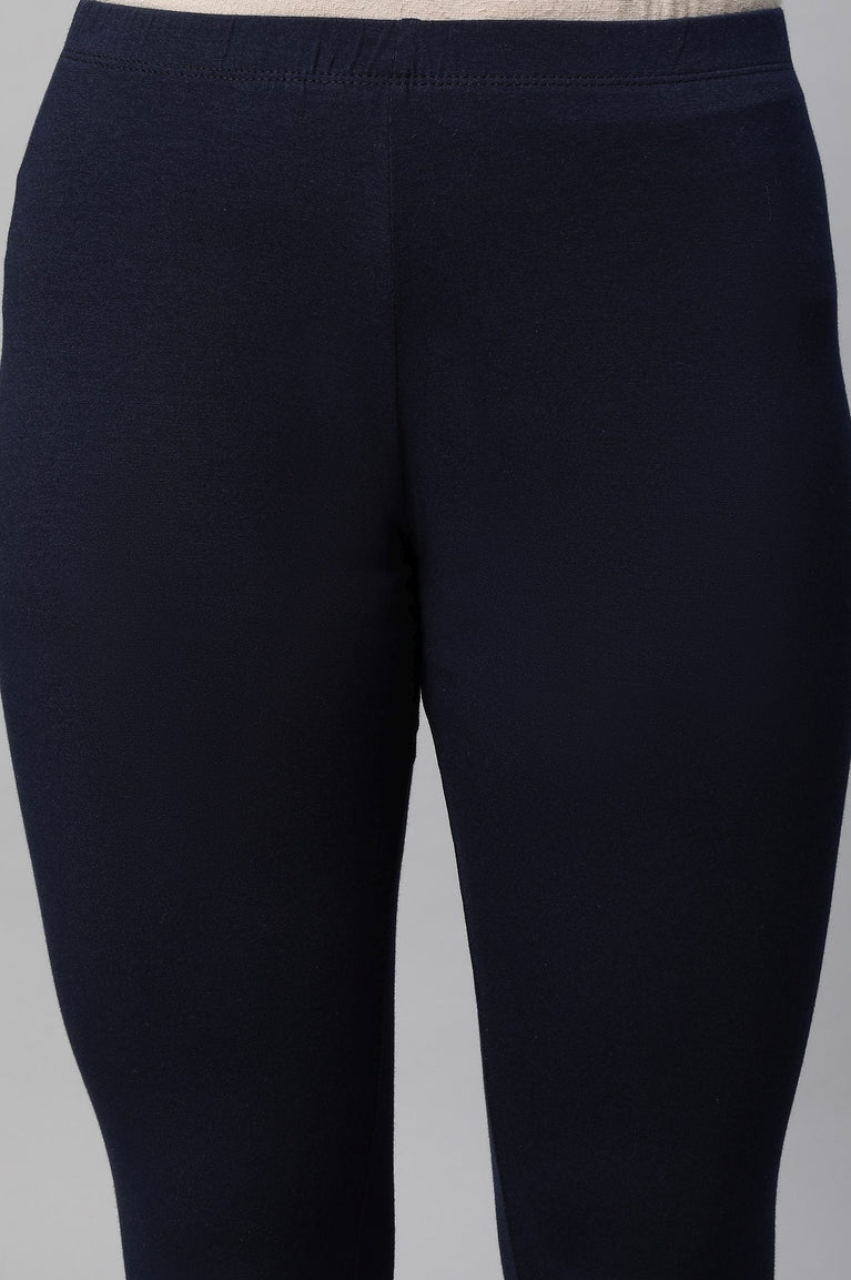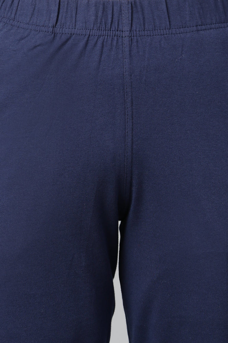 Navy Blue Solid Skinny Fit Cotton Tights With Slip On Closure