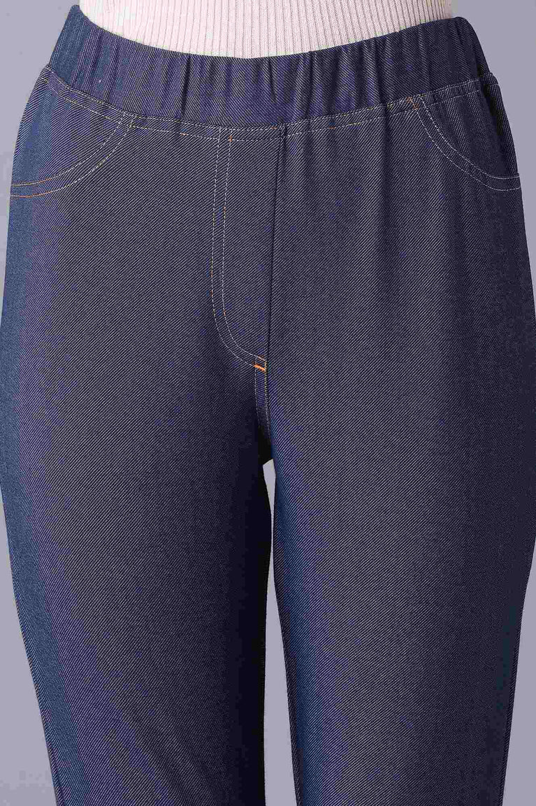 Navy Blue Solid Skinny Fit Cotton Jeggings With Elasticated Waist