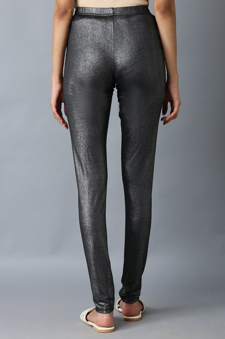 Poly Lycra Churidar In Shimmer Black Colour Comes In Midrise And Has Elasticated Waistband.