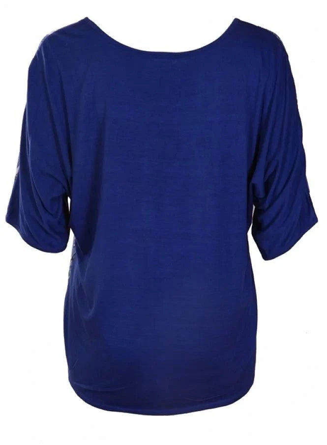 Blue Printed Round Neck 3/4 Sleeve top with 26" length