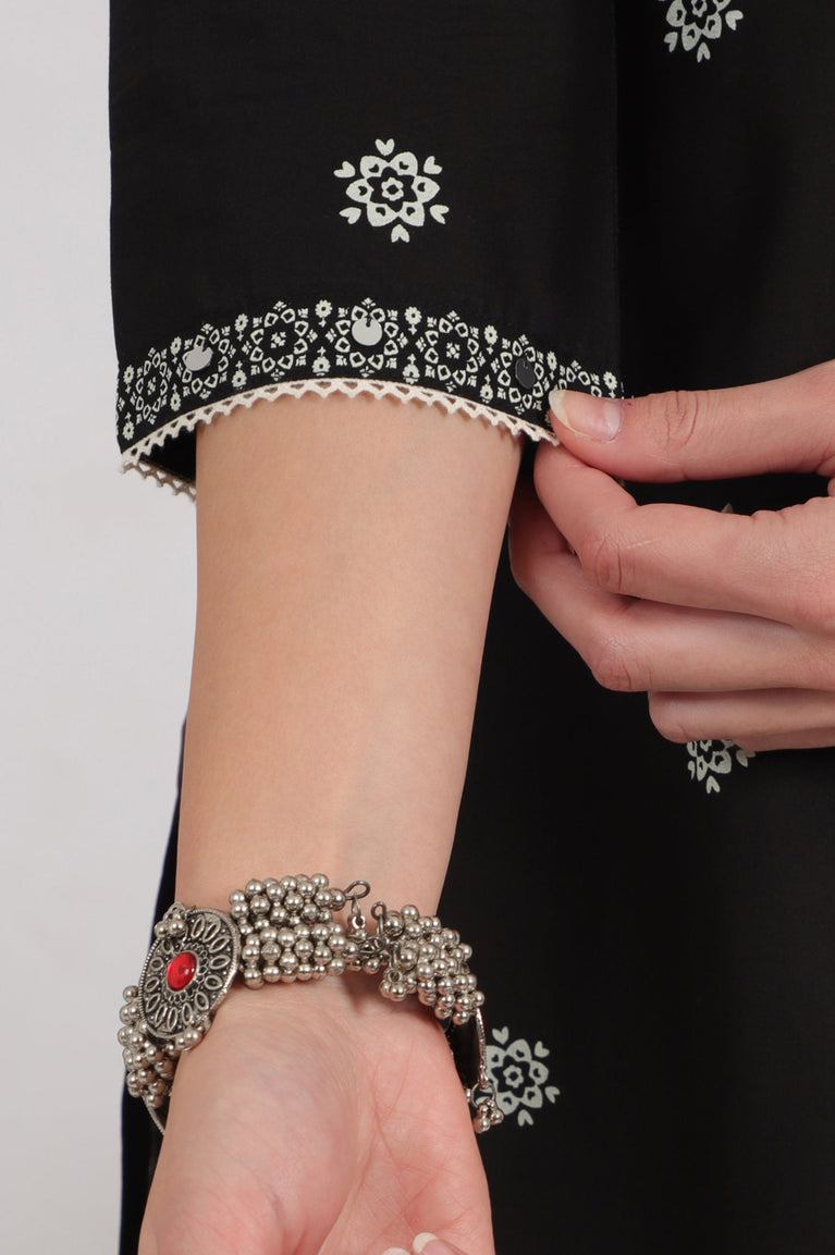 Bring effortless charm to your everyday ethnic wardrobe with this flared kurta in breathable pure cotton. Featuring subtle prints in a rich black hue, this kurta blends traditional elegance with contemporary flair. The flared silhouette offers ease of movement and a flattering fit, making it ideal for long days at work or festive family gatherings. Thoughtfully crafted with fine detailing, it ensures comfort without compromising on style. Whether paired with leggings or palazzos, this kurta for women will elevate your seasonal dressing. It’s a timeless pick for those who love easy elegance in pure cotton.