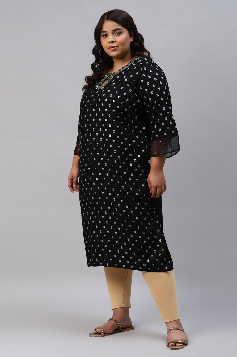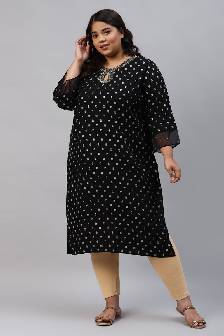 Black Printed Plus Size kurta With Embroidery And Sequins