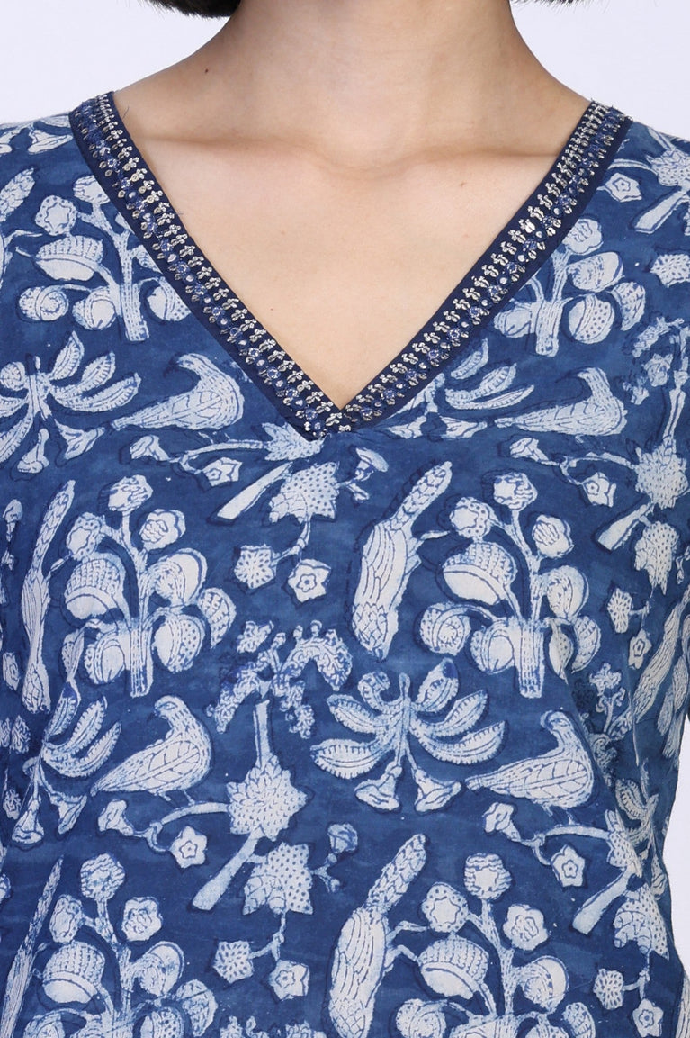 Blue Hand Block Printed Top