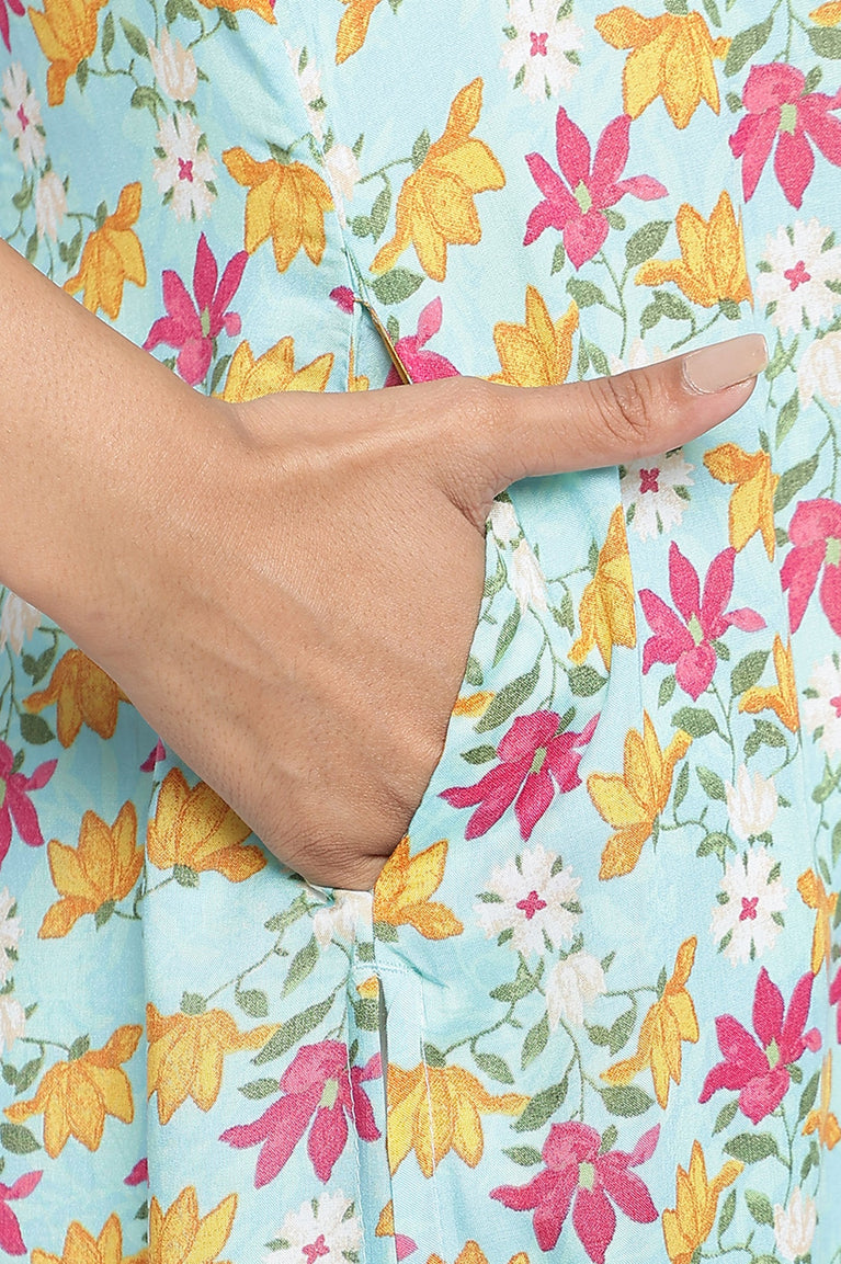 Aqua Green Printed Modal Straight Kurta