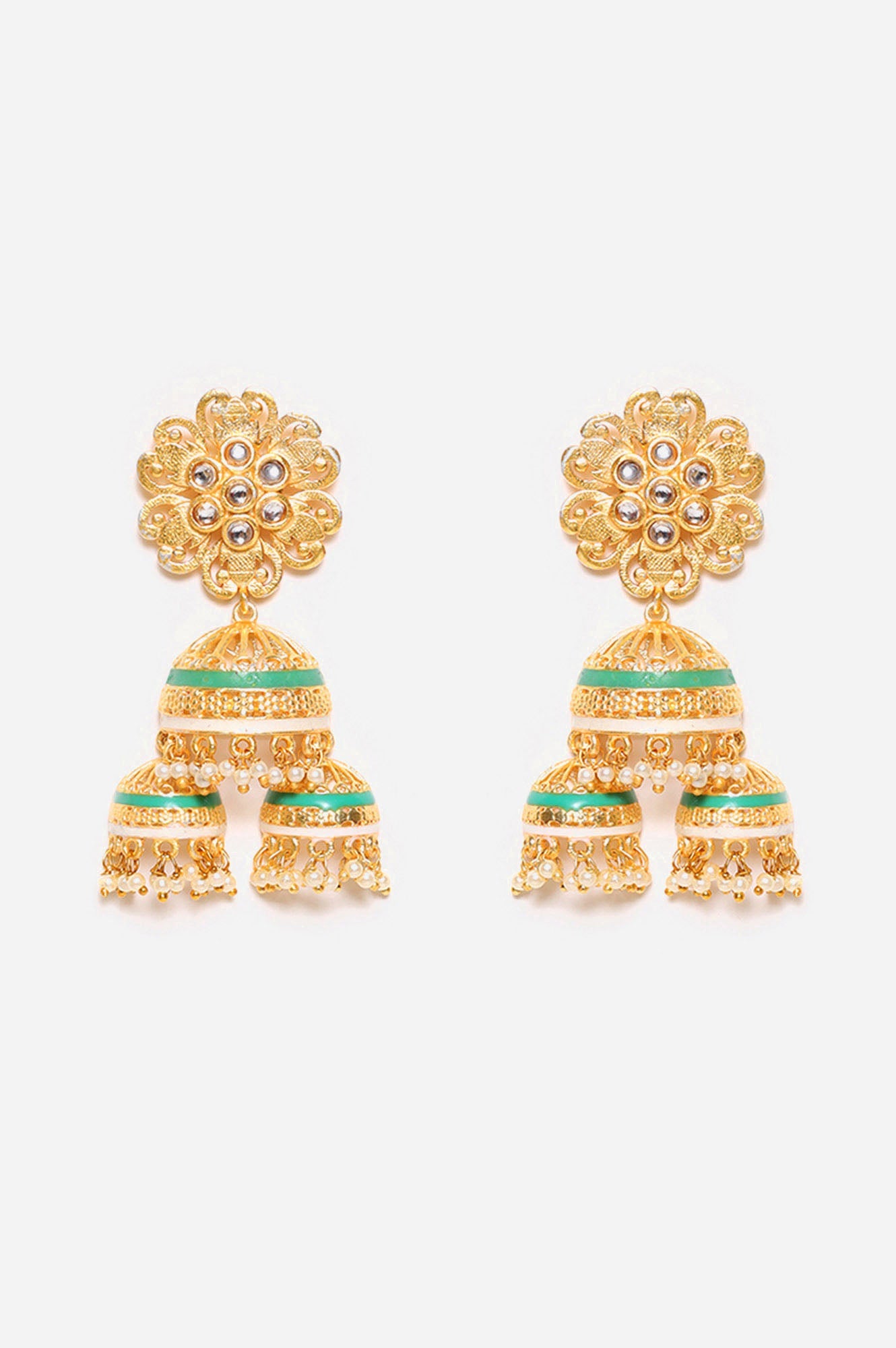 Green And White Color With White Polki Studded Multi Jhumki Gold Color Plated Jhumki Style Dangler
