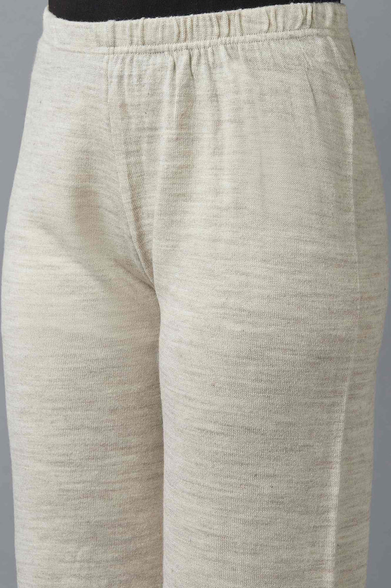 Micro-geometric precision weaving meets winter fashion in these beige palazzo pants. Crafted from 100% acrylic, they offer a flared fit with a knit fabric that feels luxurious against the skin. The elasticated mid-rise waist ensures comfort and ease, while the slip-on closure adds convenience. Perfect for casual outings, these palazzos can be paired with a shirt for a formal look or a casual top for an evening out. Machine washable for effortless care.