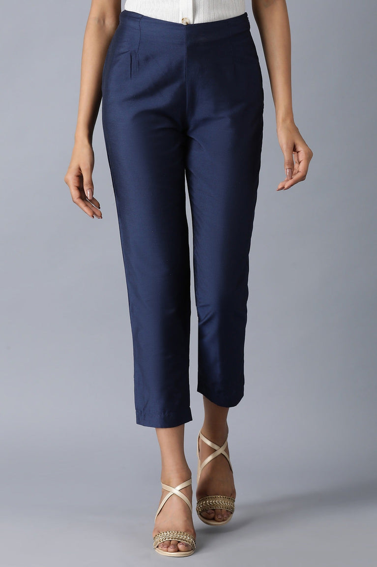 Blue Solid Trousers