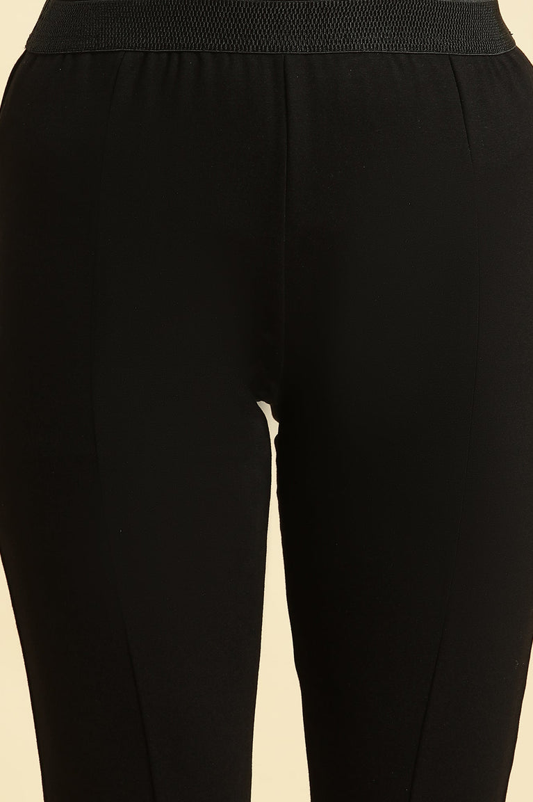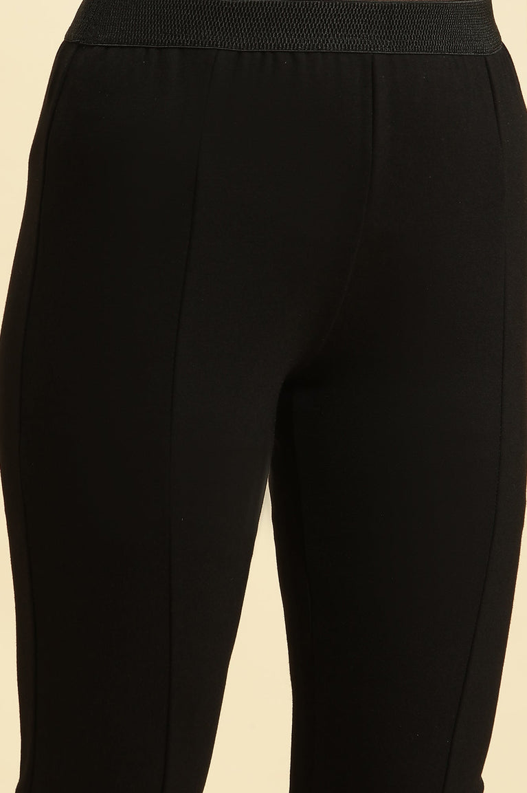 Tailored for versatility! These slim-fit black leggings for women sculpt a sleek mid-rise profile in soft rayon, accentuated by a skinny leg silhouette. The elastic waistband ensures a smooth fit, while the stretchable fabric offers high comfort and flexibility. Perfect for casual outings, workouts, or travel, these leggings pair effortlessly with tank tops and sneakers for a chic look. Designed to move with you, they are a wardrobe essential for every modern woman.