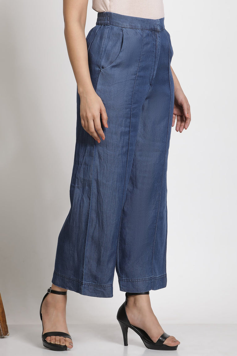 Black Solid Boot Cut Palazzo With Elasticated Waist