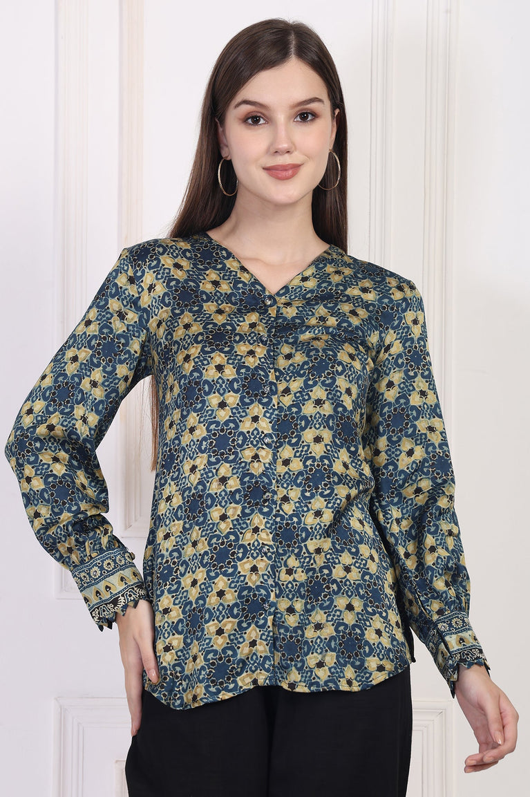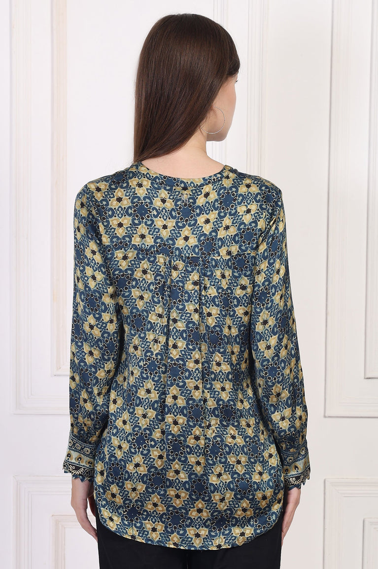 Blue Abstract Printed Straight Modal Top
