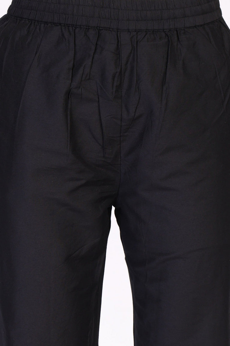 Black Solid Straight Pant