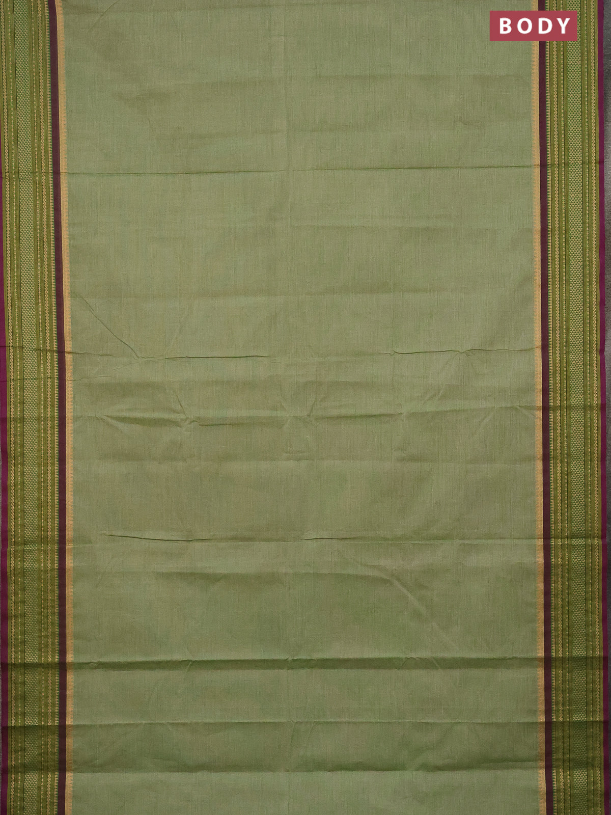 10 Yards chettinad cotton saree pastel green shade and purple with plain body and thread woven border