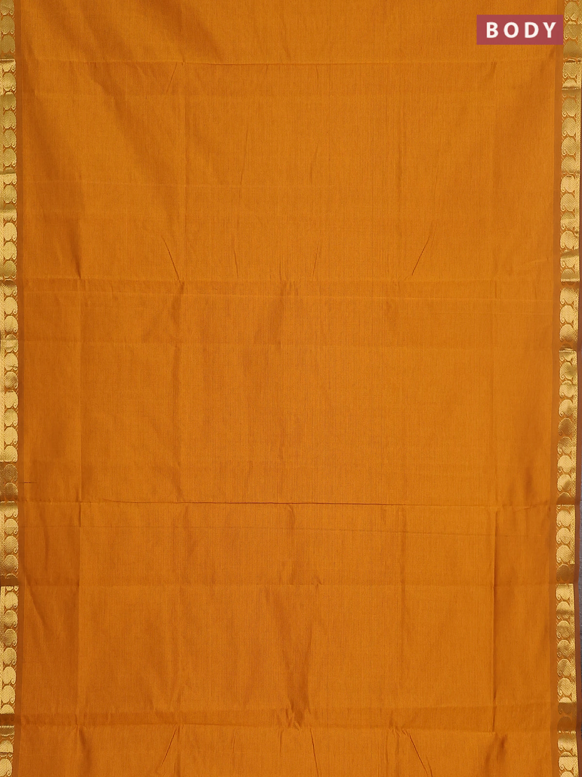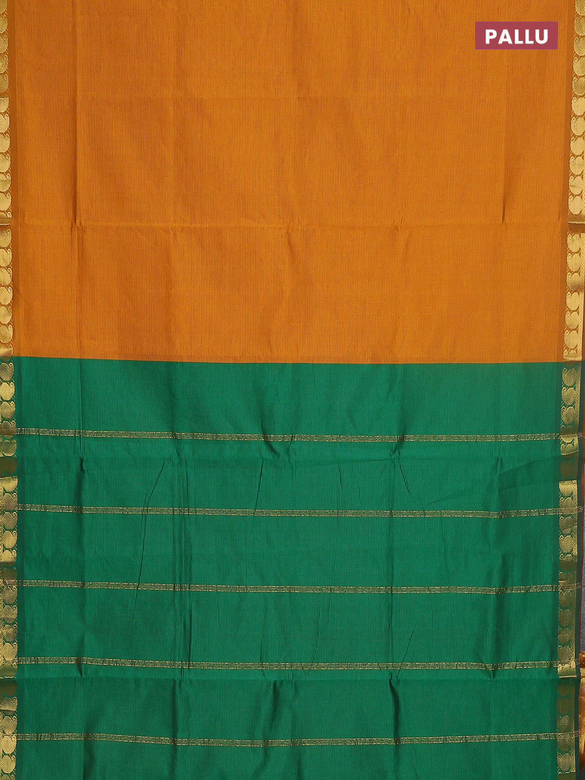 10 yards Poly cotton saree dark mustard and green with plain body and zari woven border