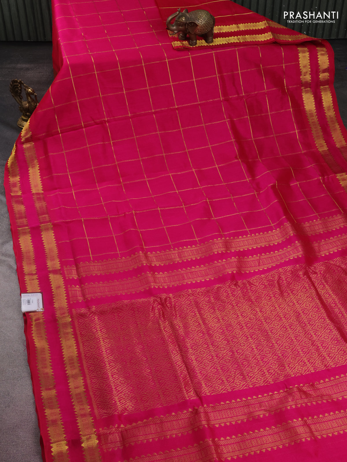 10 yards silk cotton saree pink with allover zari checked pattern and zari woven border