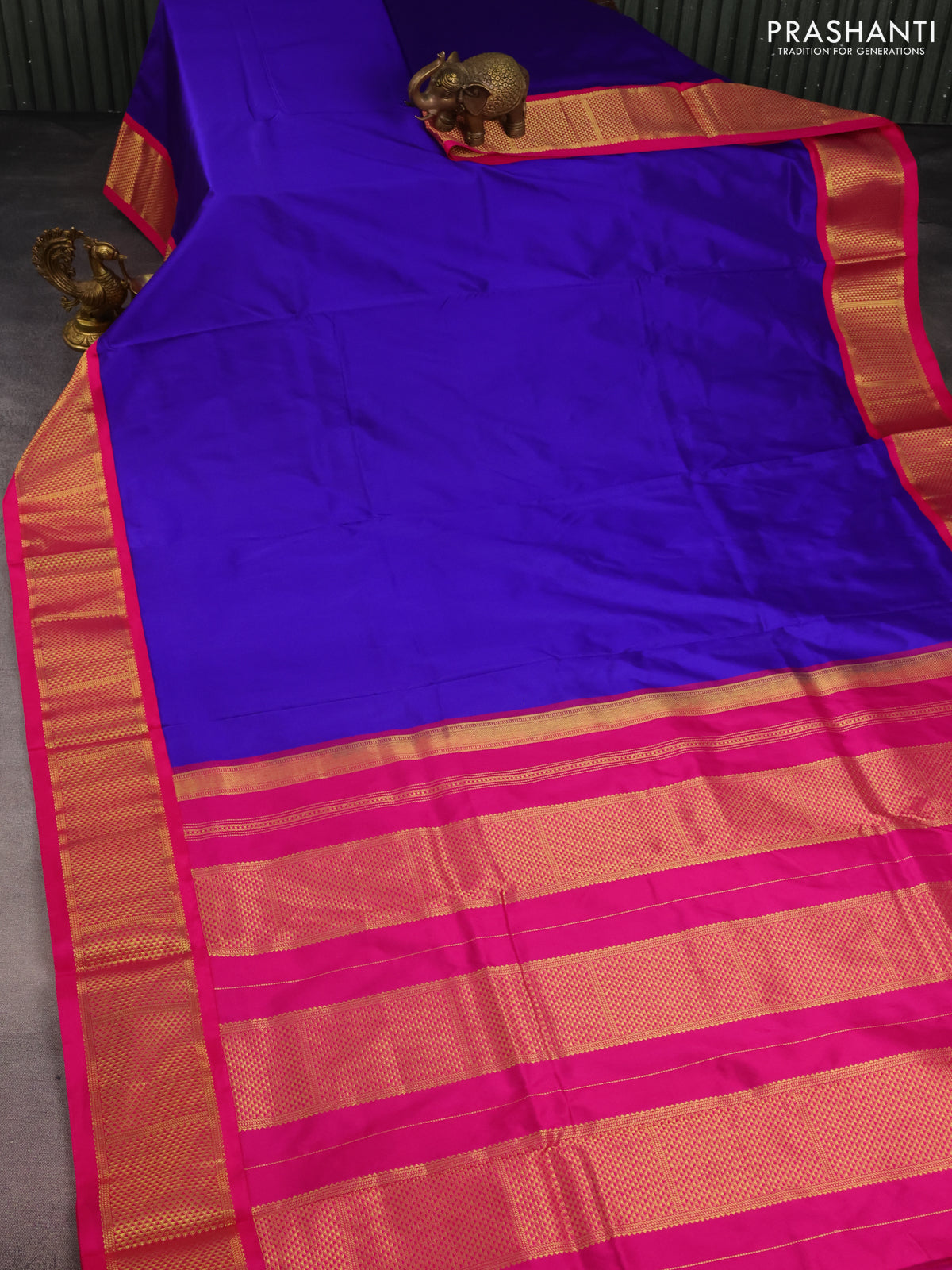 10 Yards silk saree blue and pink with plain body and zari woven border