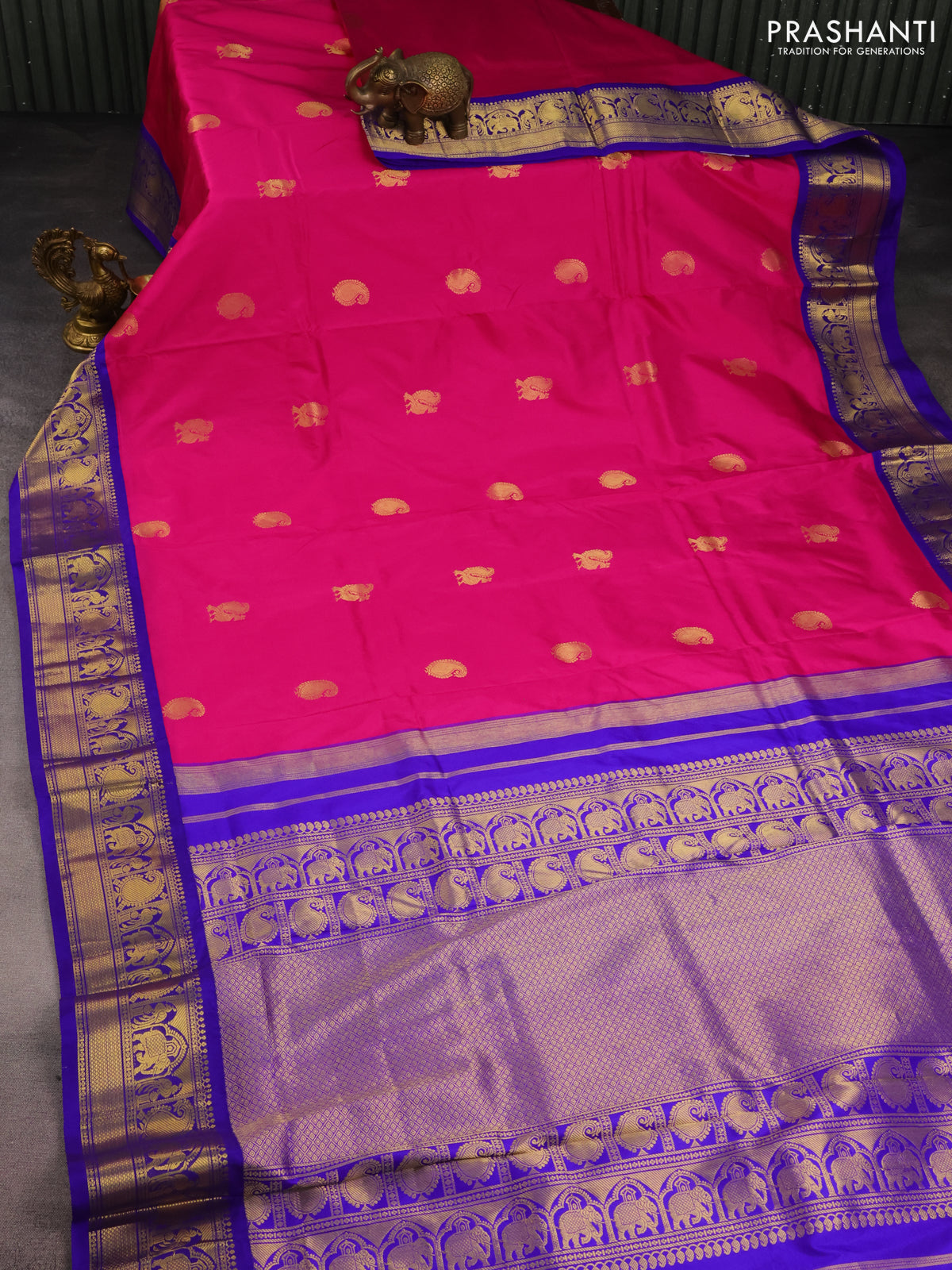 10 Yards silk saree pink and blue with annam & paisley zari woven buttas and zari woven border