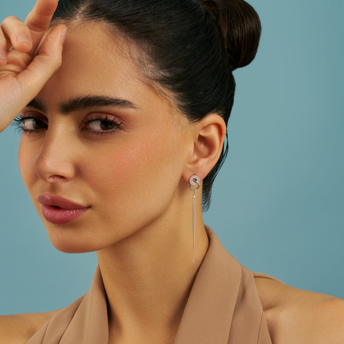 Stay fabulous with these 92.5 silver earrings from Kushal's Fashion Jewellery featuring stunning white zircons. With polishes in gold, rhodium, and rose gold to choose from, these hangings add a touch of elegance to any outfit. Crafted from 92.5 silver, these earrings with secure push-back closure ensure they stay in place all day.