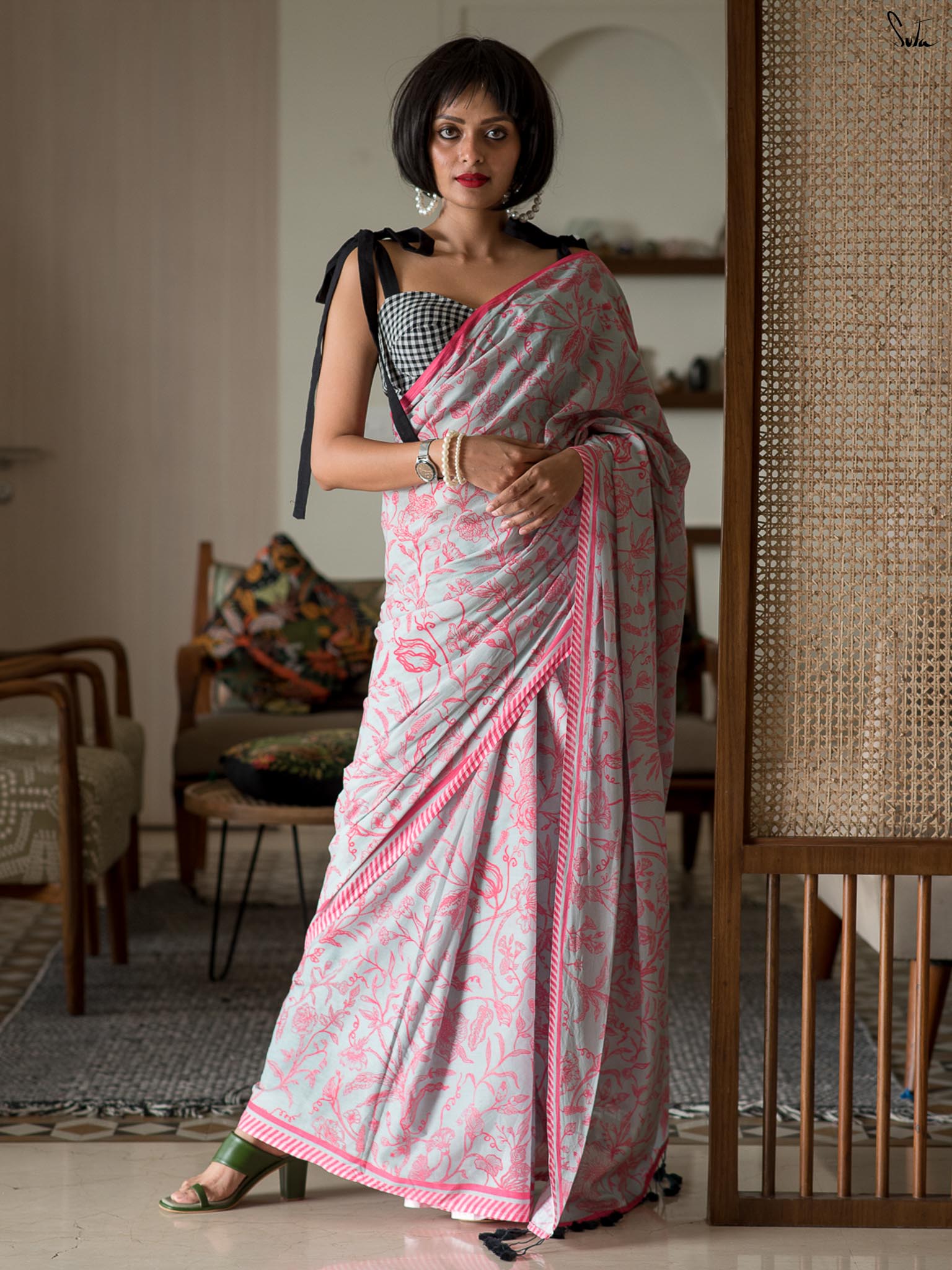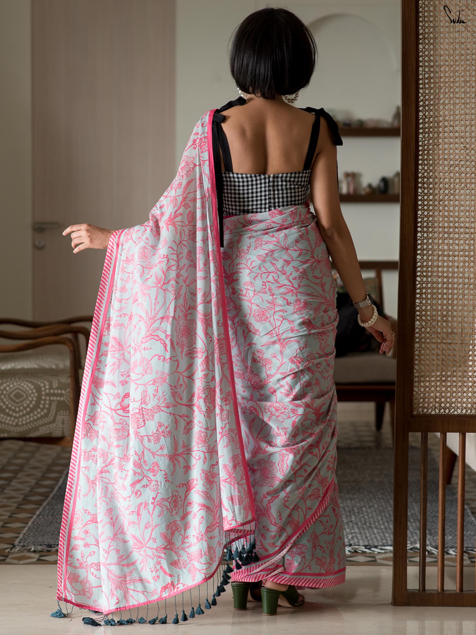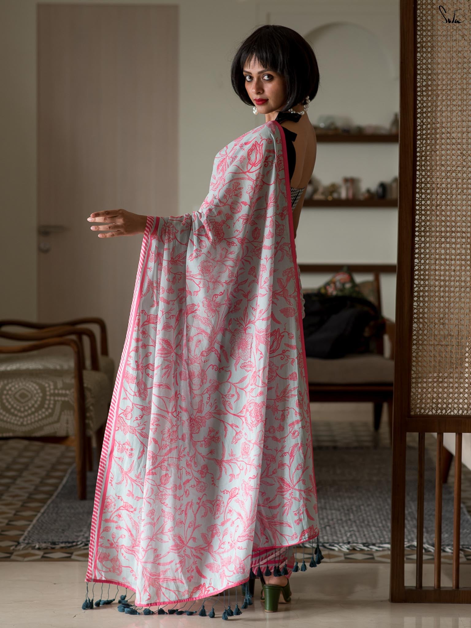 Note: Our mul sarees are slightly transparent, it’s the nature of the fabric and part of its soft, airy charm.