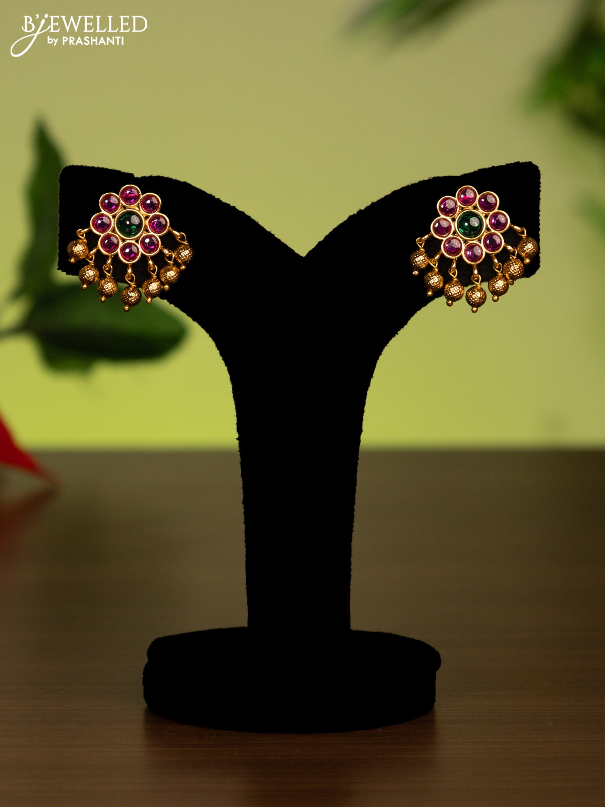 Antique attigai necklace with kemp stones and golden beads hanging