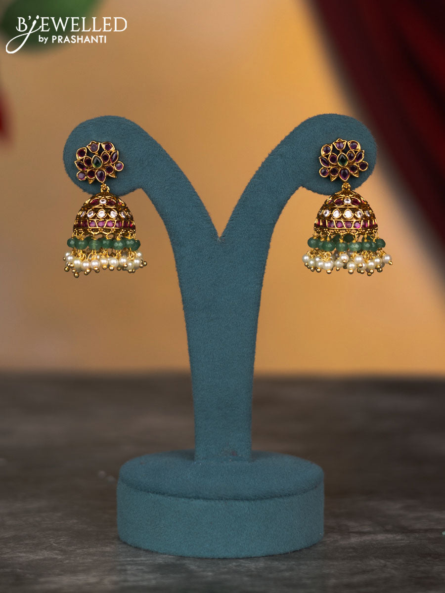 Antique changable 3 pendant necklace lakshmi & manga design with kemp & cz stones and pearl & beads hangings