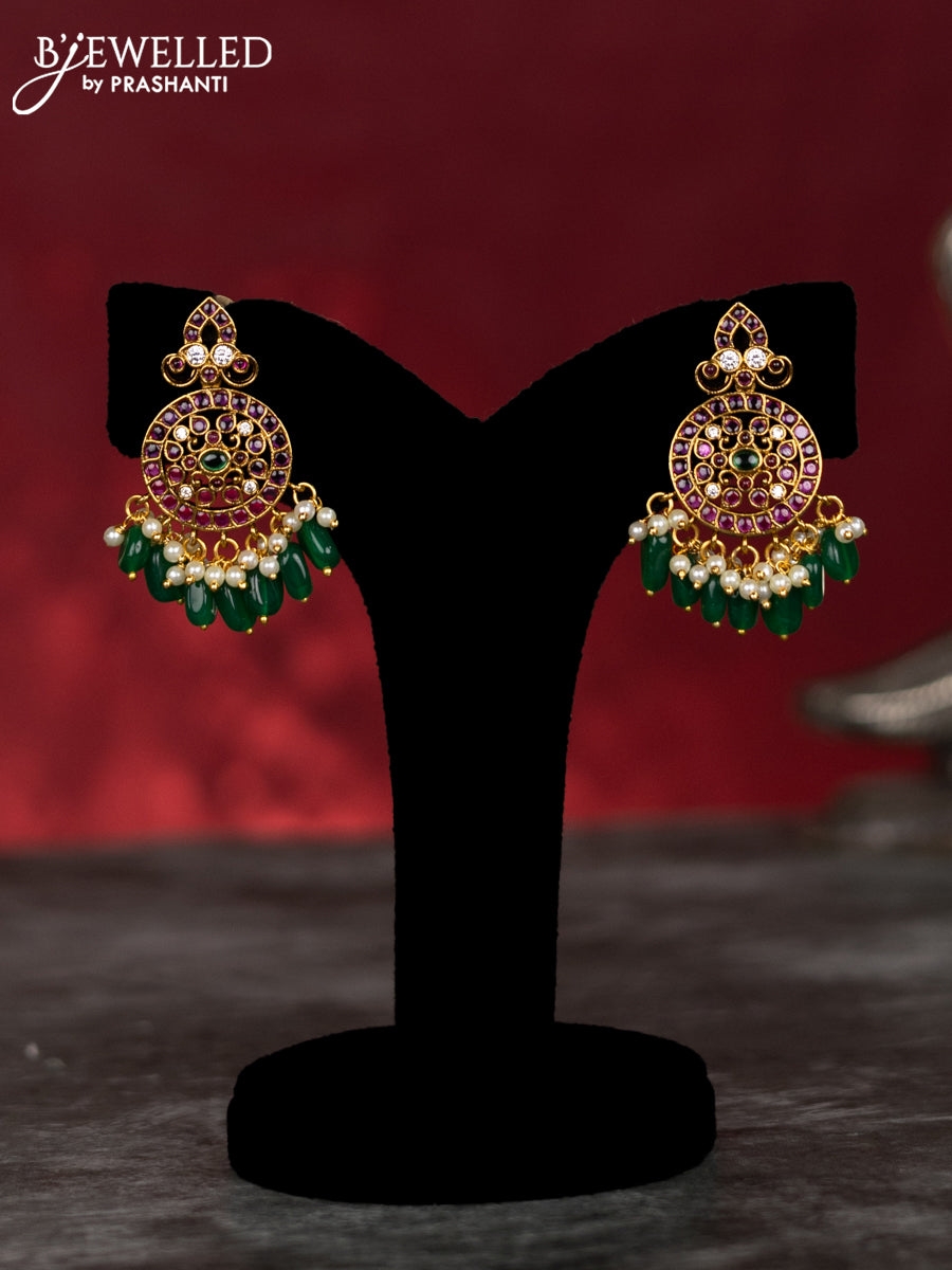 Antique guttapusalu haram floral & chandbali design with kemp & cz stones and pearl & green beads hangings