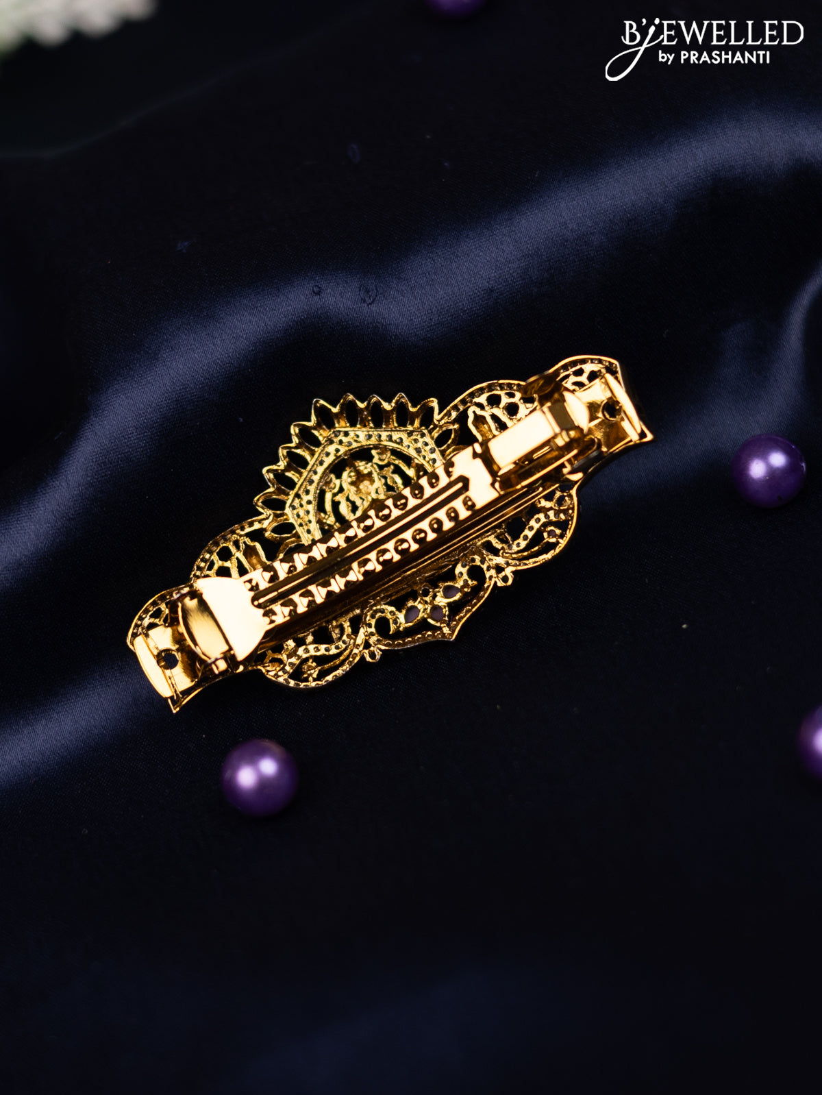 Antique hair clip medium size lakshmi design with kemp and cz stones