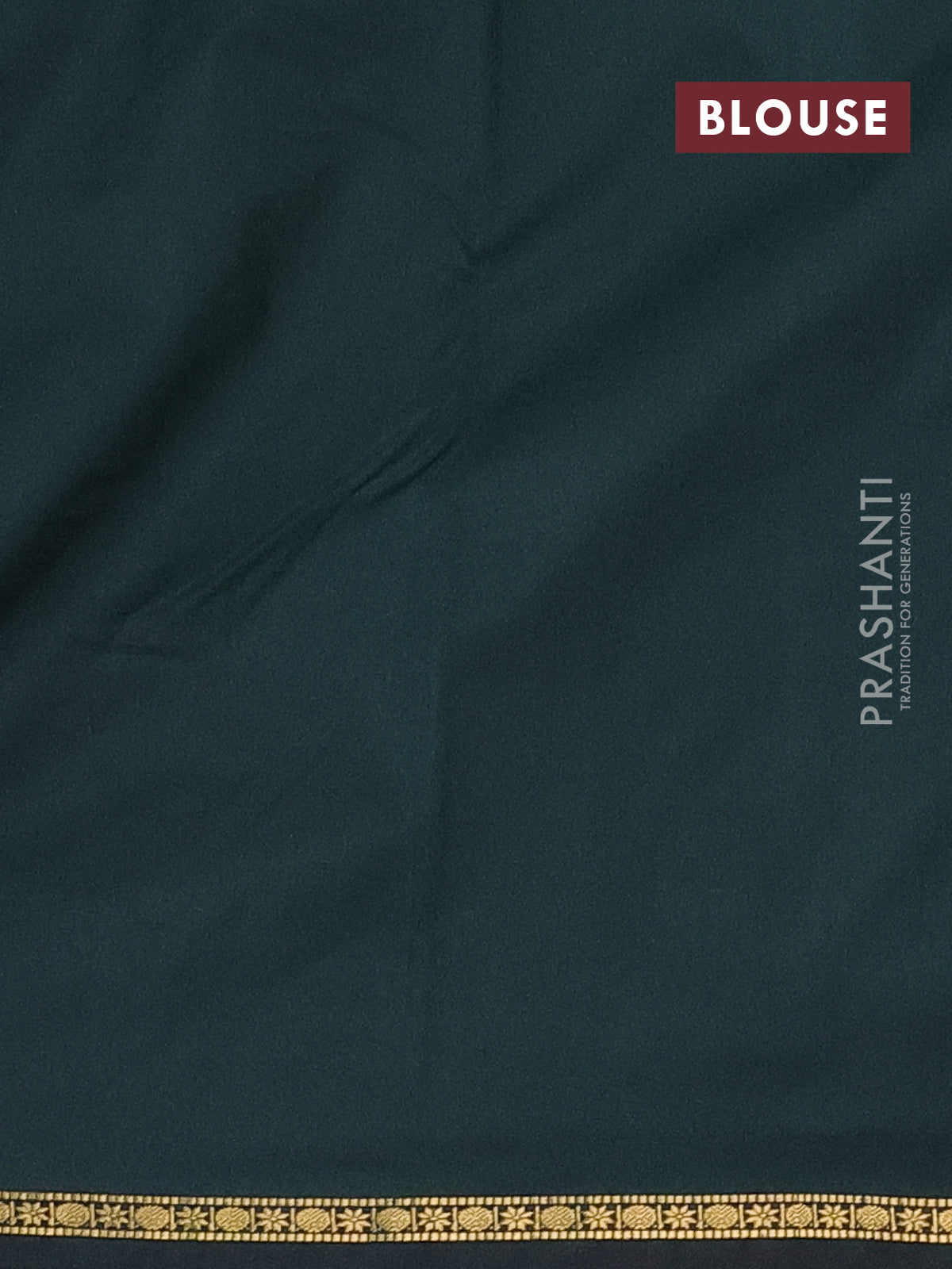 Arani semi silk saree bottle green with plain body and small zari woven border