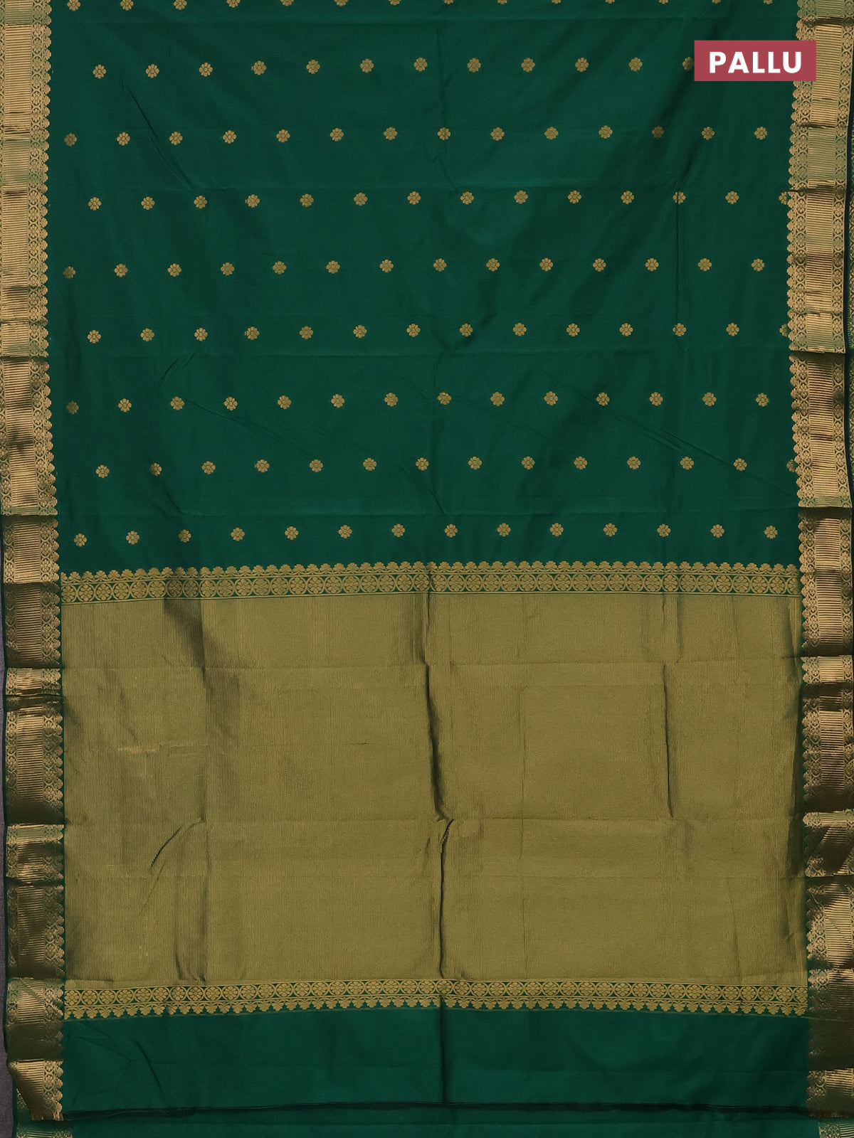 Arani semi silk saree green with zari woven floral buttas and zari woven border