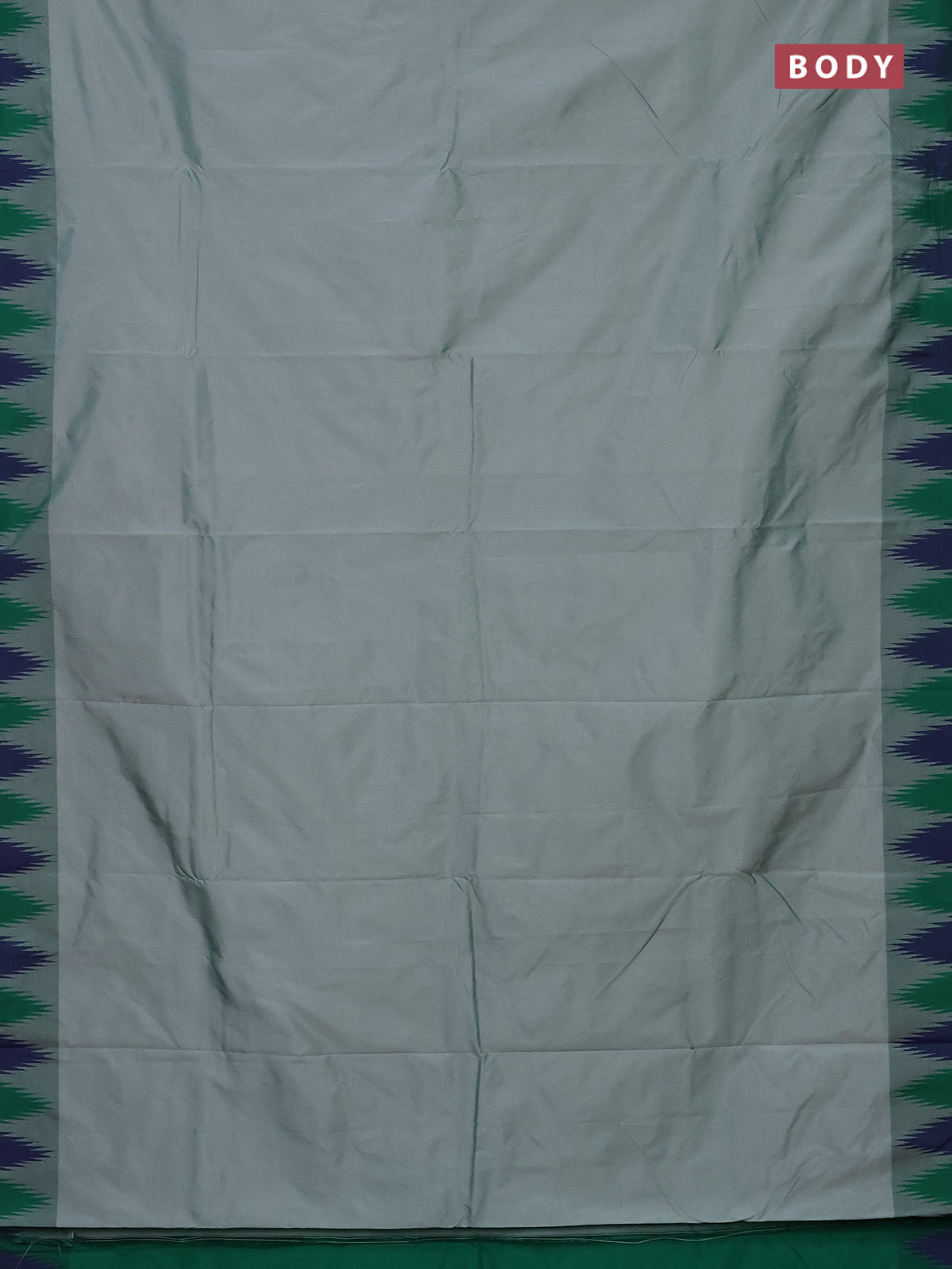 Arani semi silk saree greyish green and green with plain body and temple design border