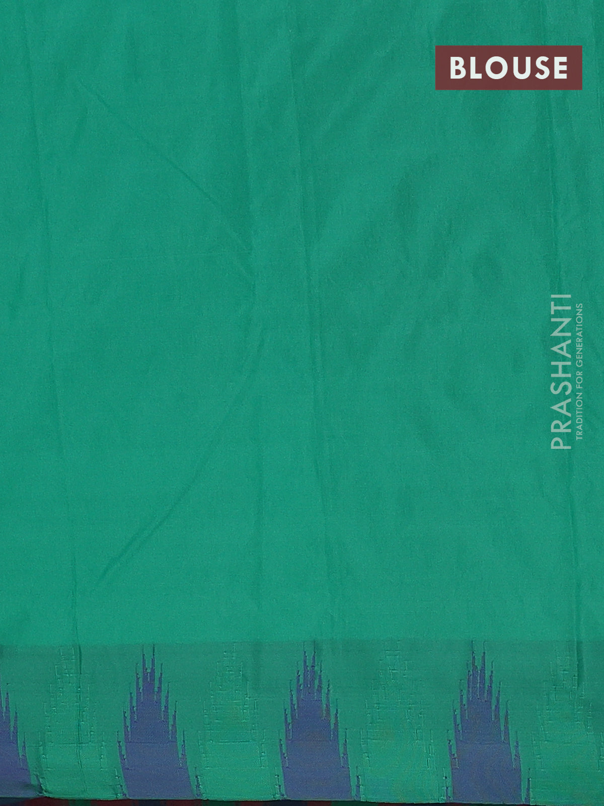 Arani semi silk saree magenta pink and green with plain body and temple design border