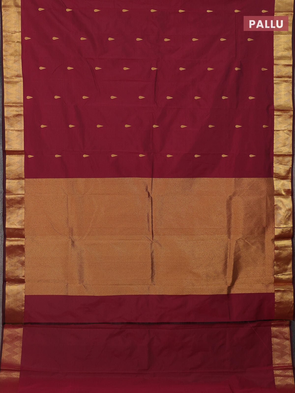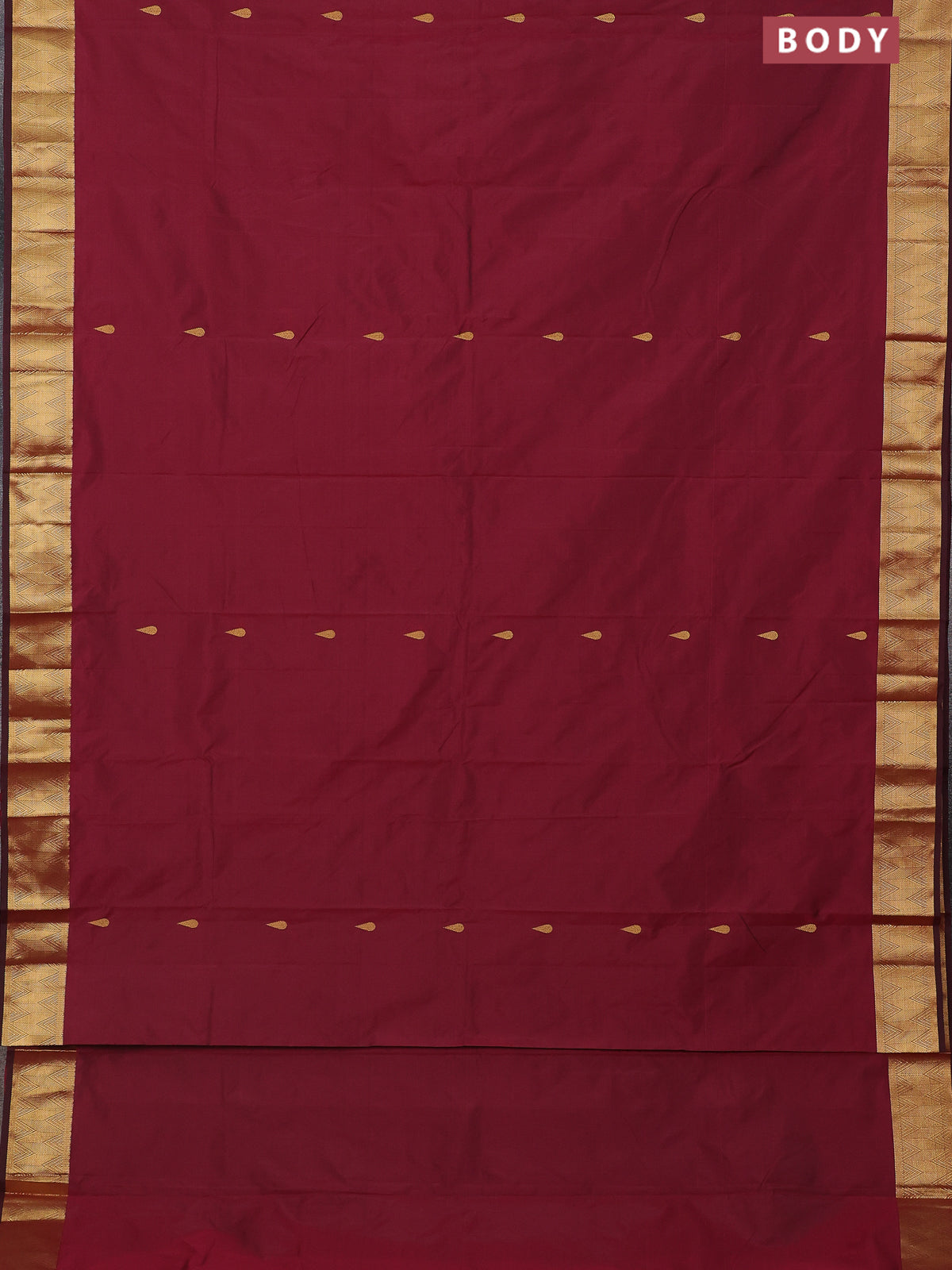 Arani semi silk saree maroon shade with zari woven thilak buttas and zari woven border