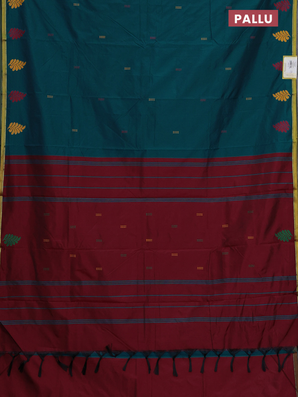 Arani semi silk saree peacock green and maroon with thread woven buttas and piping border