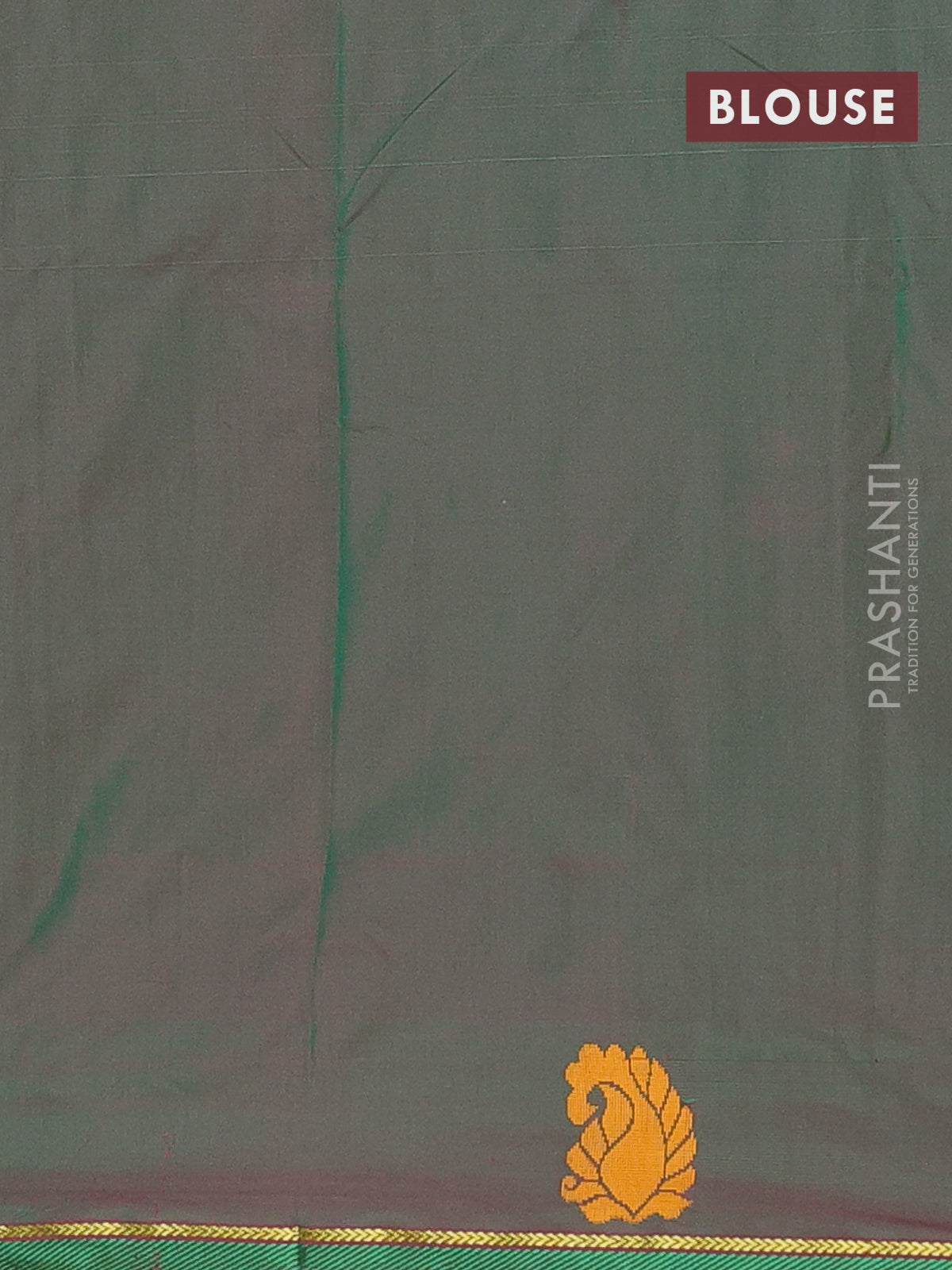 Arani semi silk saree reddish pink and green with thread woven buttas and thread woven butta border