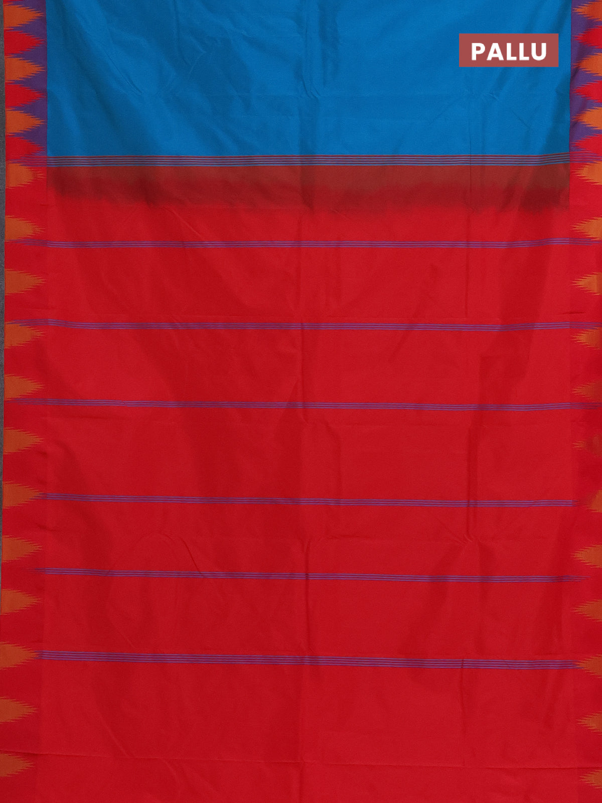 Arani semi silk saree teal blue and pink with plain body and temple design border