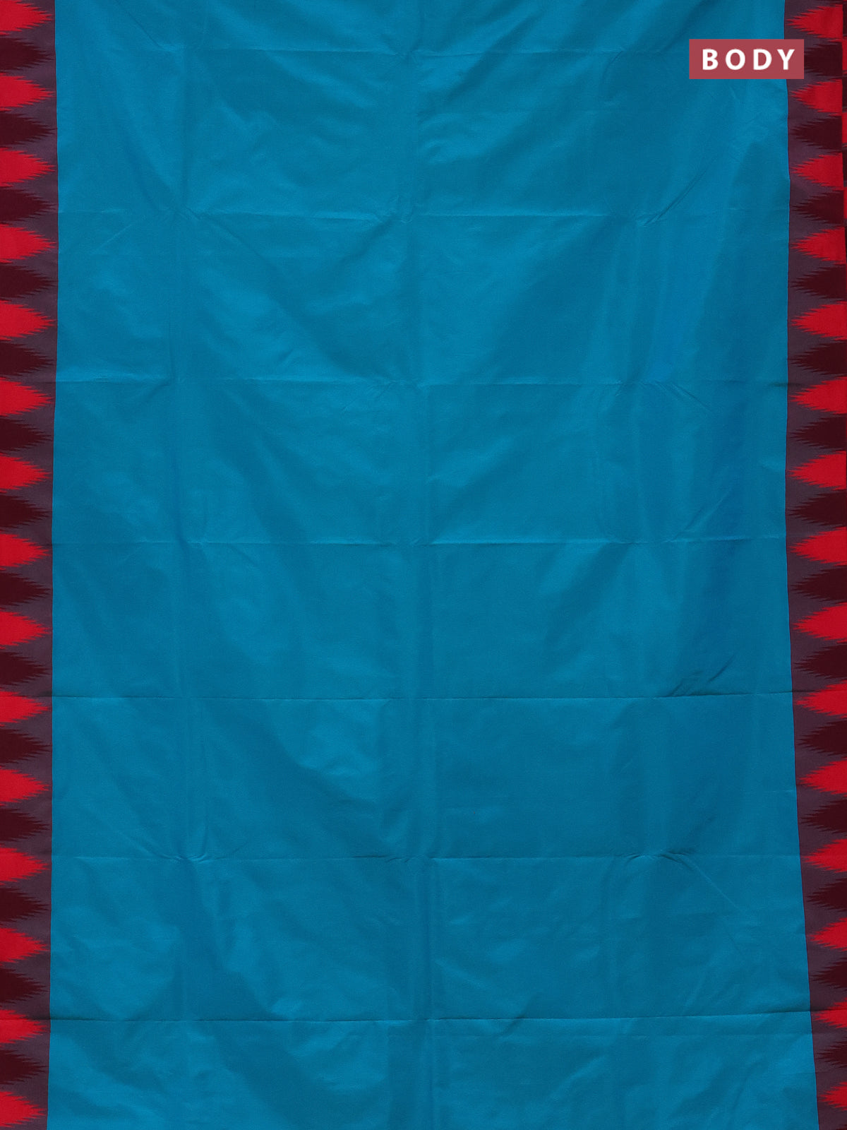 Arani semi silk saree teal blue shade and dual shade of pink with plain body and temple design border