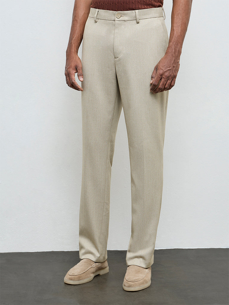 Ascot introduces these beige chinos, tailored from a soft yet durable blend fabric that offers both comfort and structure. Cut in a relaxed silhouette with a mid rise waist, they are finished with a button fastening, zipper fly, belt loops and multiple pockets for everyday functionality. Clean and well balanced in design, they serve as an easy choice for smart casual dressing.