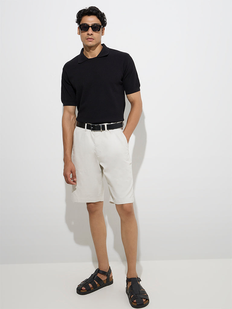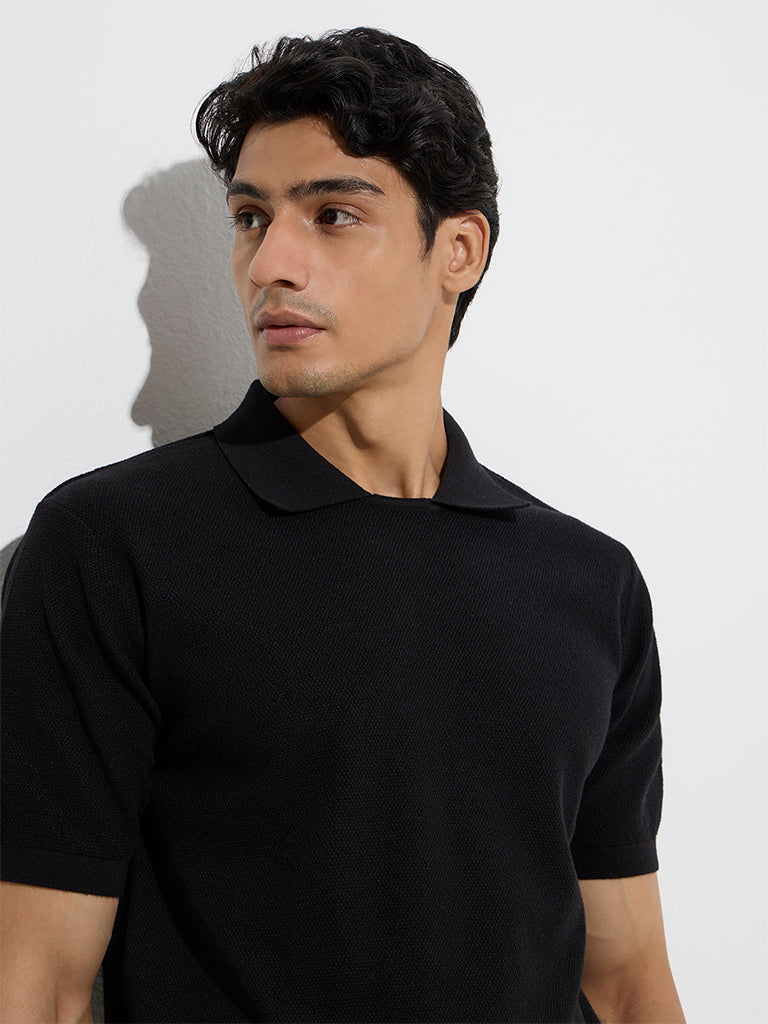 Add a touch of sophistication to your casual wardrobe with this black t-shirt from Ascot. Made from quality fabric in a self-textured profile, it features a relaxed silhouette that feels easy and comfortable. The spread collar and half sleeves lend a smart edge, making it a versatile pick for laid-back outings.
