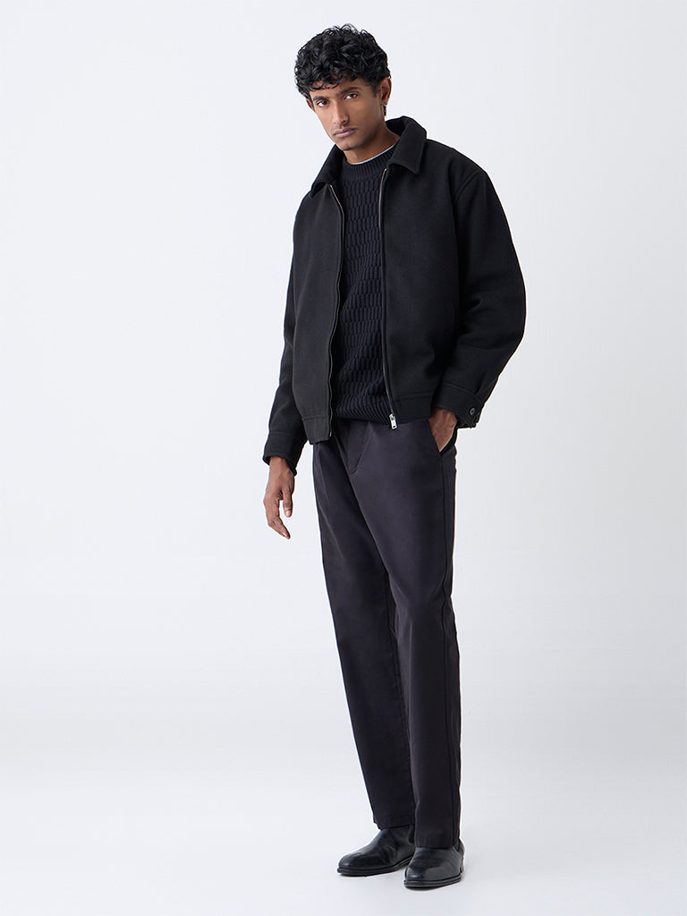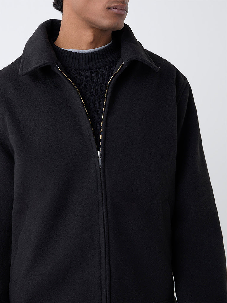 Ascot introduces this black suede jacket, designed with a crisp collar and a clean zip closure that give it a sharp, modern edge. Shaped in a relaxed handle with full sleeves, it blends luxurious texture with everyday wearability — a statement outer layer for contemporary wardrobes.
