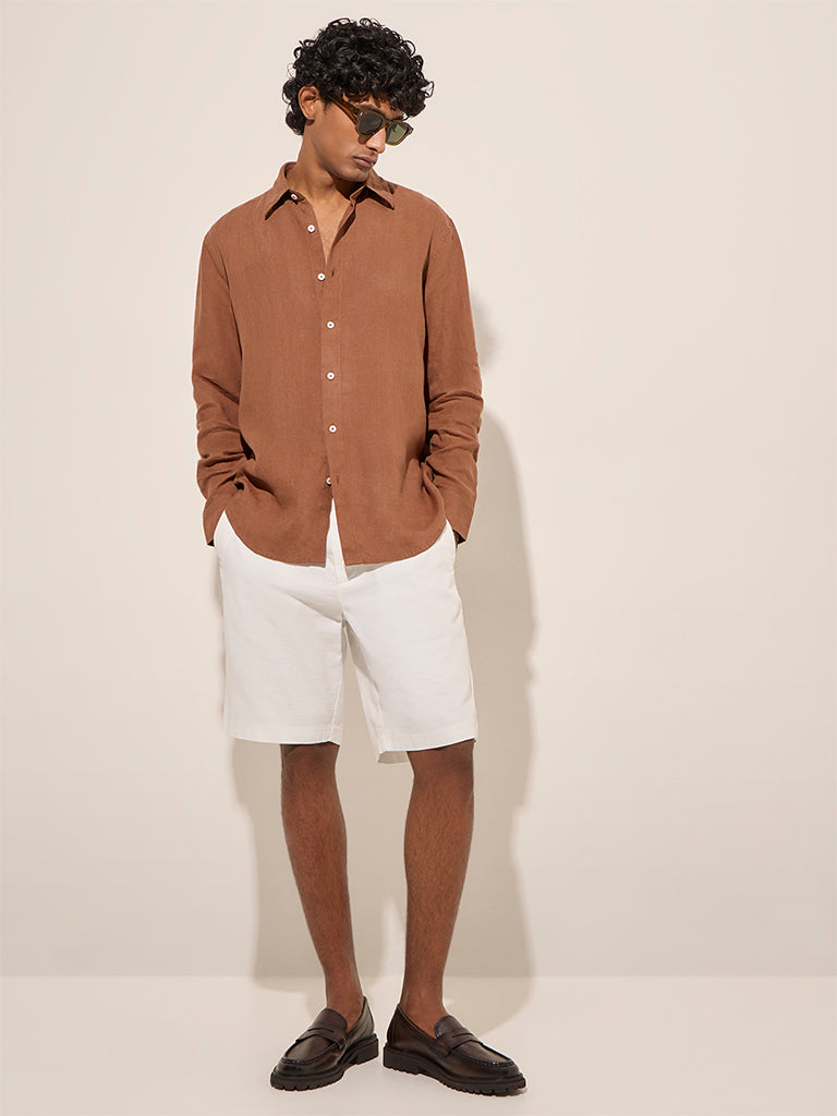 Ascot Brown Relaxed-Fit Linen-Blend Shirt