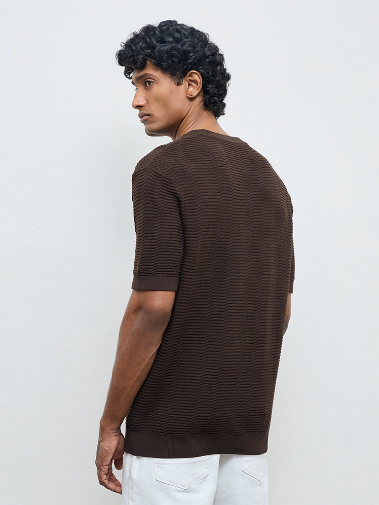 Ascot Dark Brown Textured Relaxed-Fit Cotton T-Shirt