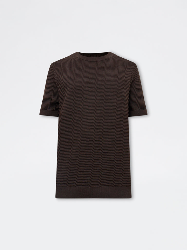 This dark brown t-shirt from Ascot brings a refined ease to your everyday wardrobe with its tactile textured surface. Shaped in a relaxed fit, it features a crew neck and short sleeves for classic appeal. Crafted from a cotton-rich fabric, it offers a breathable feel suited for all-day wear. A versatile essential that balances clean design with effortless comfort.