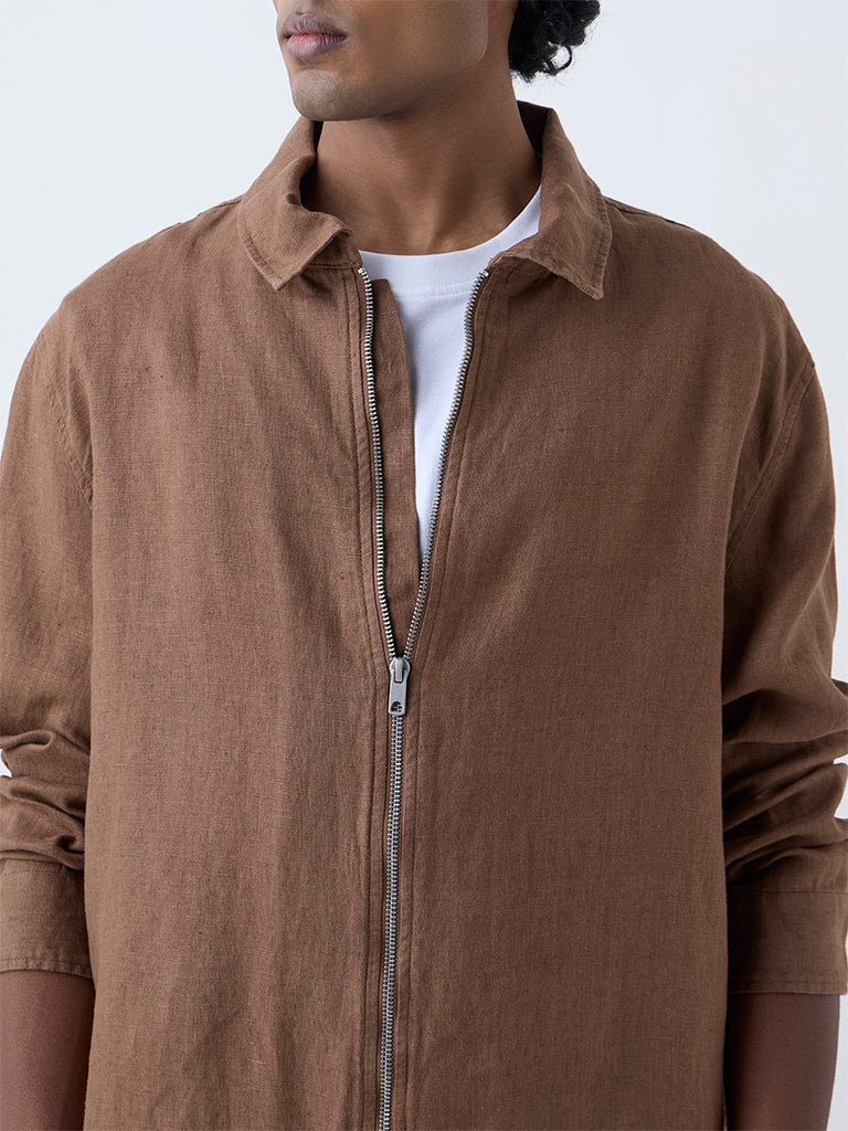 Ascot Khaki Solid Relaxed-Fit Linen Jacket