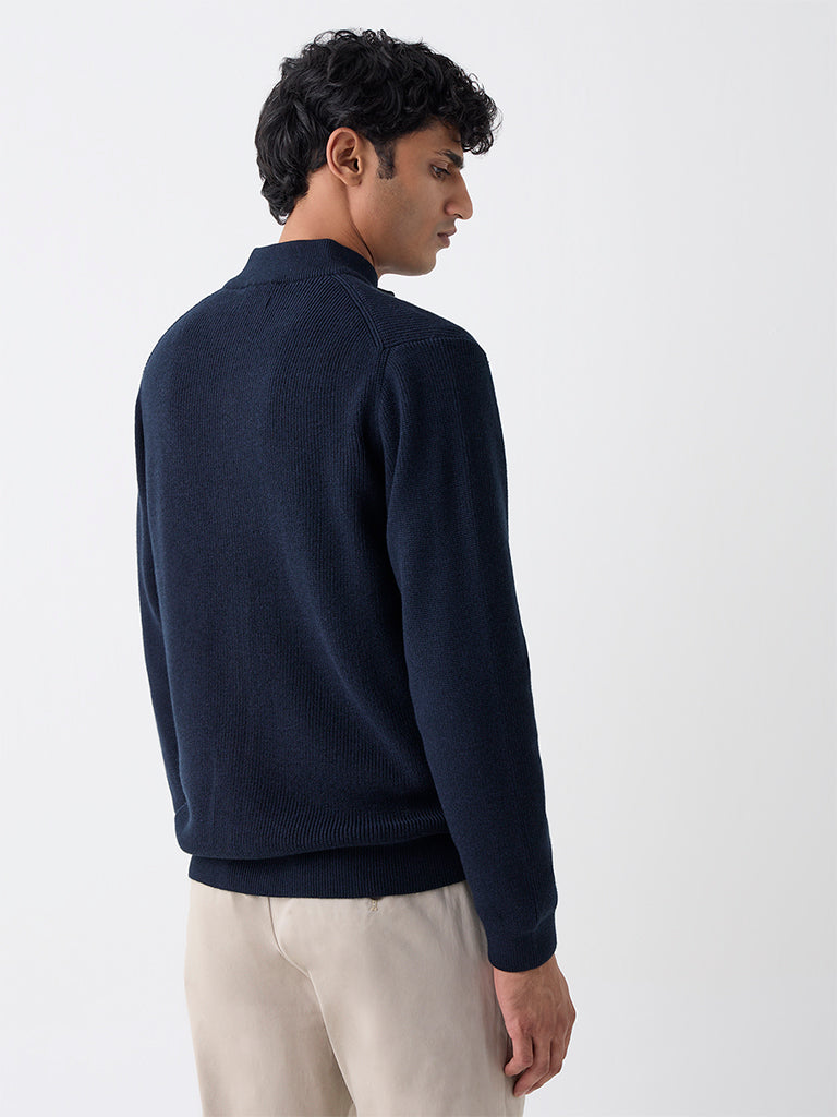 Ascot Navy Knit-Textured Relaxed Fit Jacket