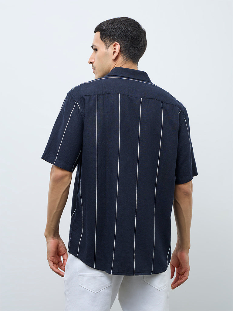 Ascot Navy Stripe Printed Relaxed-Fit Shirt