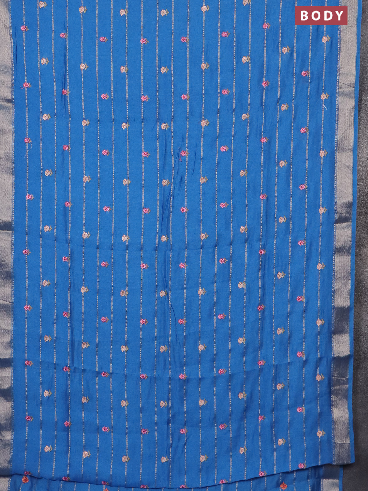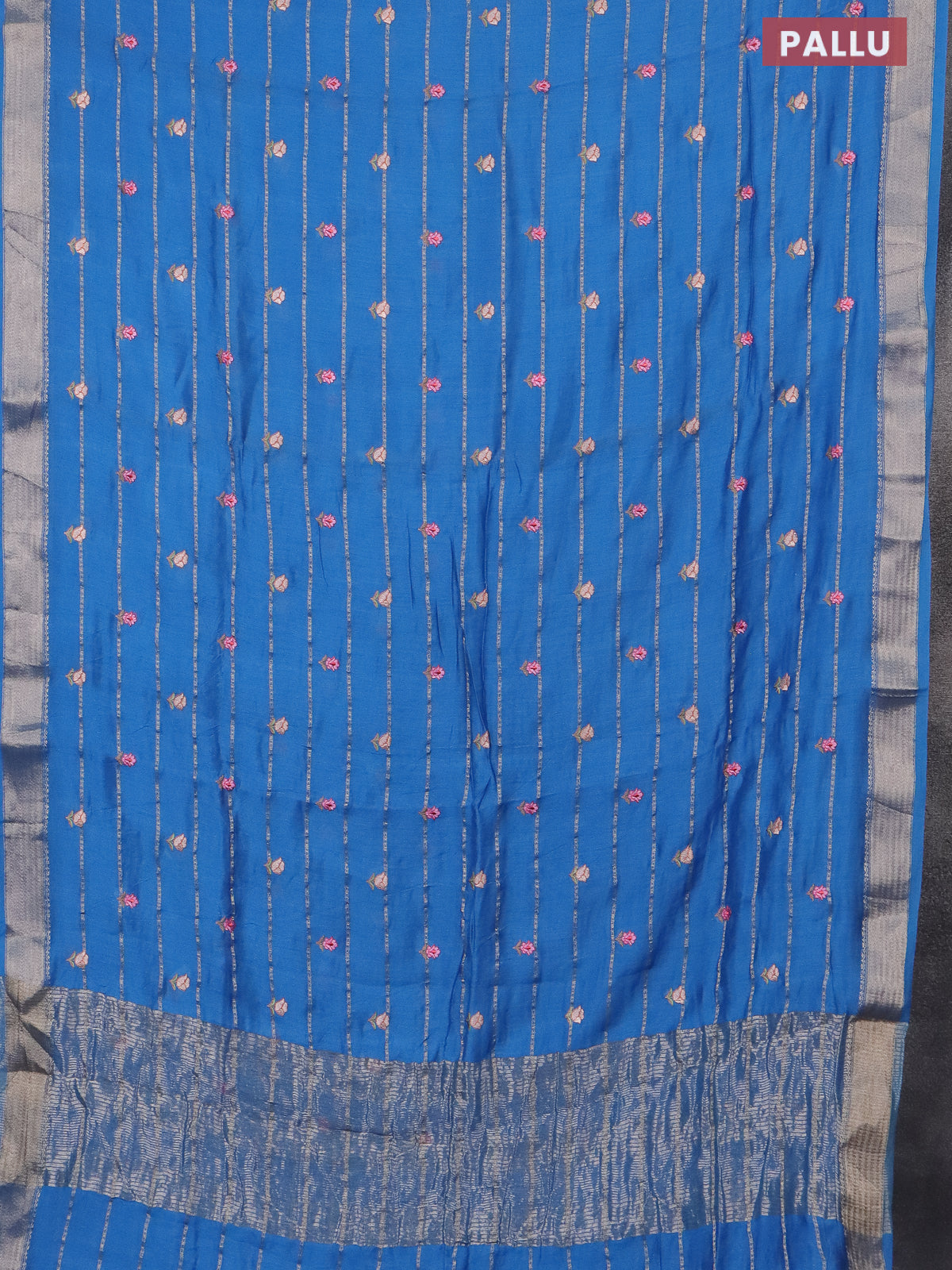 Assam silk saree cs blue with allover zari weaves & embroidery work buttas and zari woven border